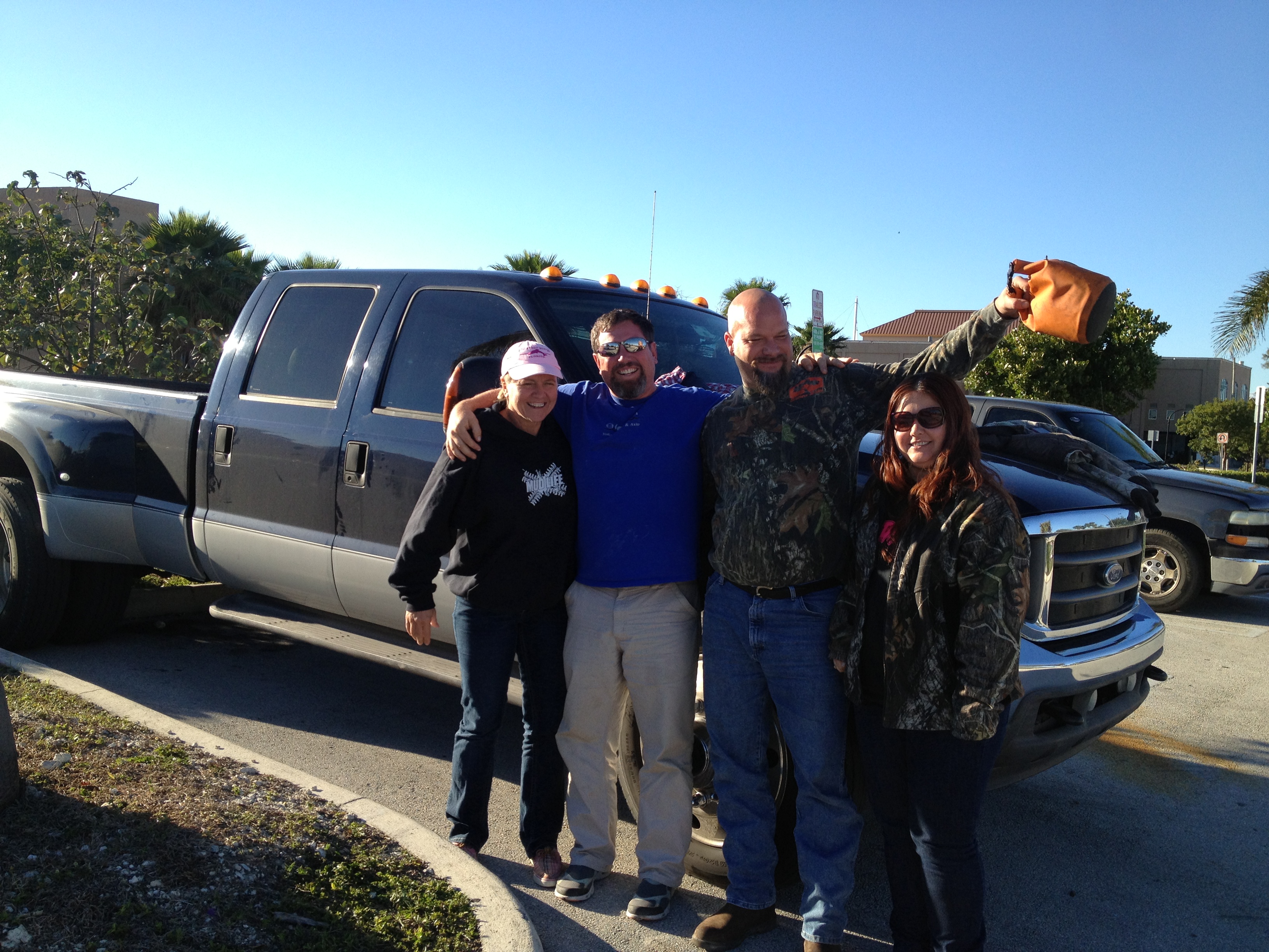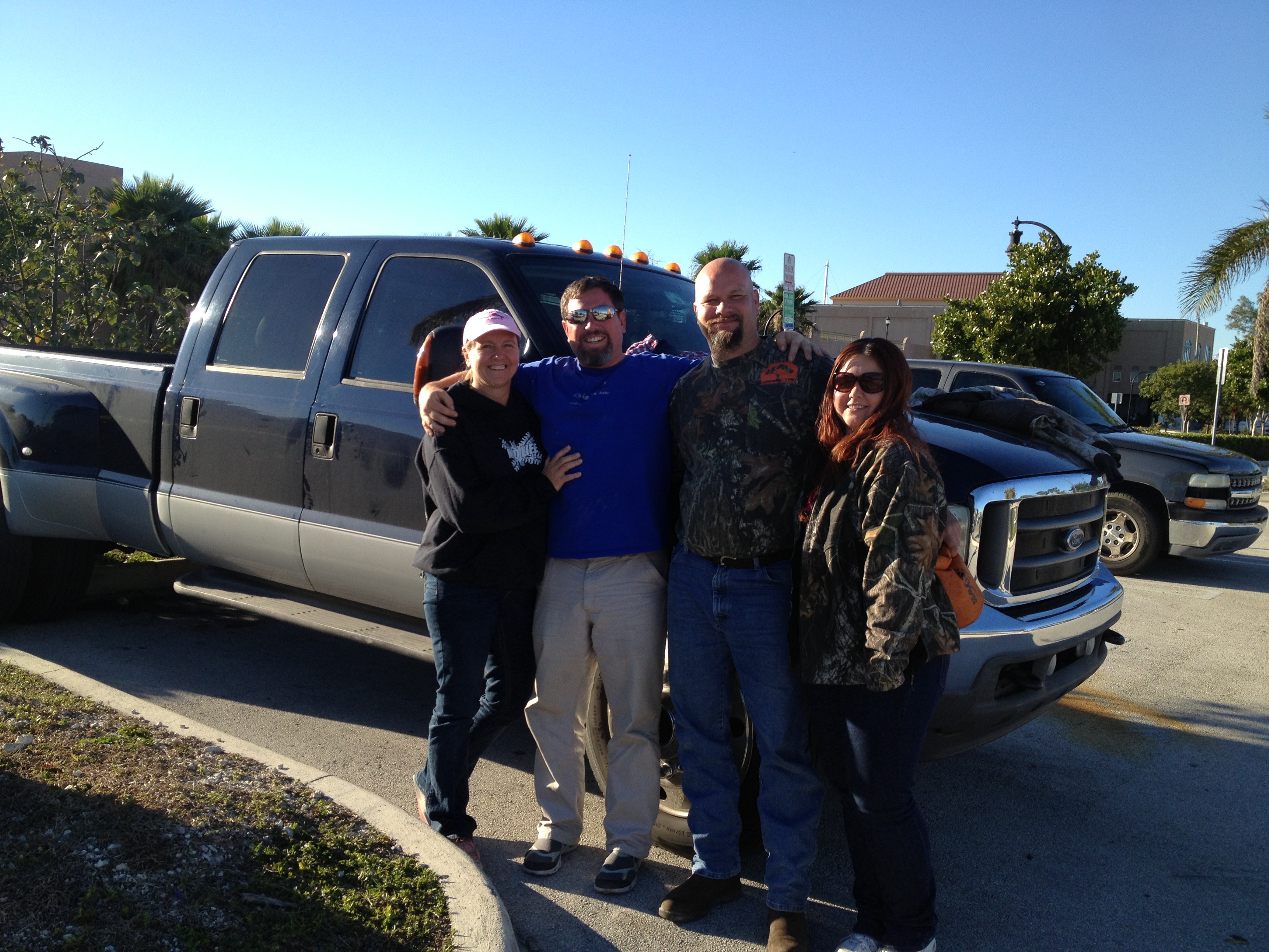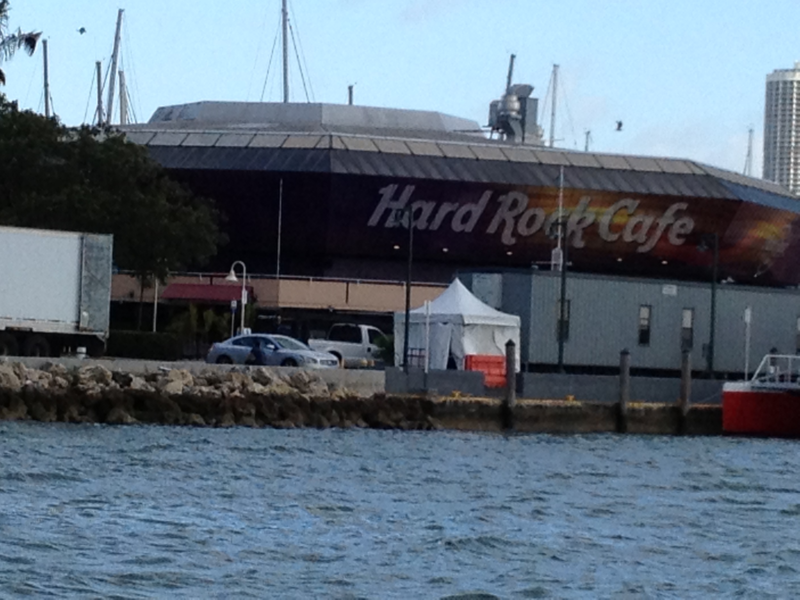 Steve’s friend JJ called this morning and he and his wife Patty are coming over to the dock Steve is gonna pick them up and bring them to the boat. Steve dinghied over and picked them up when they arrived and we had a wonderful visit and Patty suggested we eat at a place called Flanigans `which had some wonderful ribs and a delicious chocolate oreo twix chocolate syrup ice cream brownie dessert. We went toward the south beach area but the traffic was so thick and there was nowhere to park. I got to see Steve’s old school area and his house down here. JJ and Patty came back to the boat and hung out a while and headed back to the dock. They are really great people and i hope we get to see them again before we go to the Bahamas. Steve and I had leftover ribs and went to bed to listen to the howling winds blowing our halyard around and swaying to the waves. This boat is so peaceful at night and the stars look so pretty. Goodnight everyone!