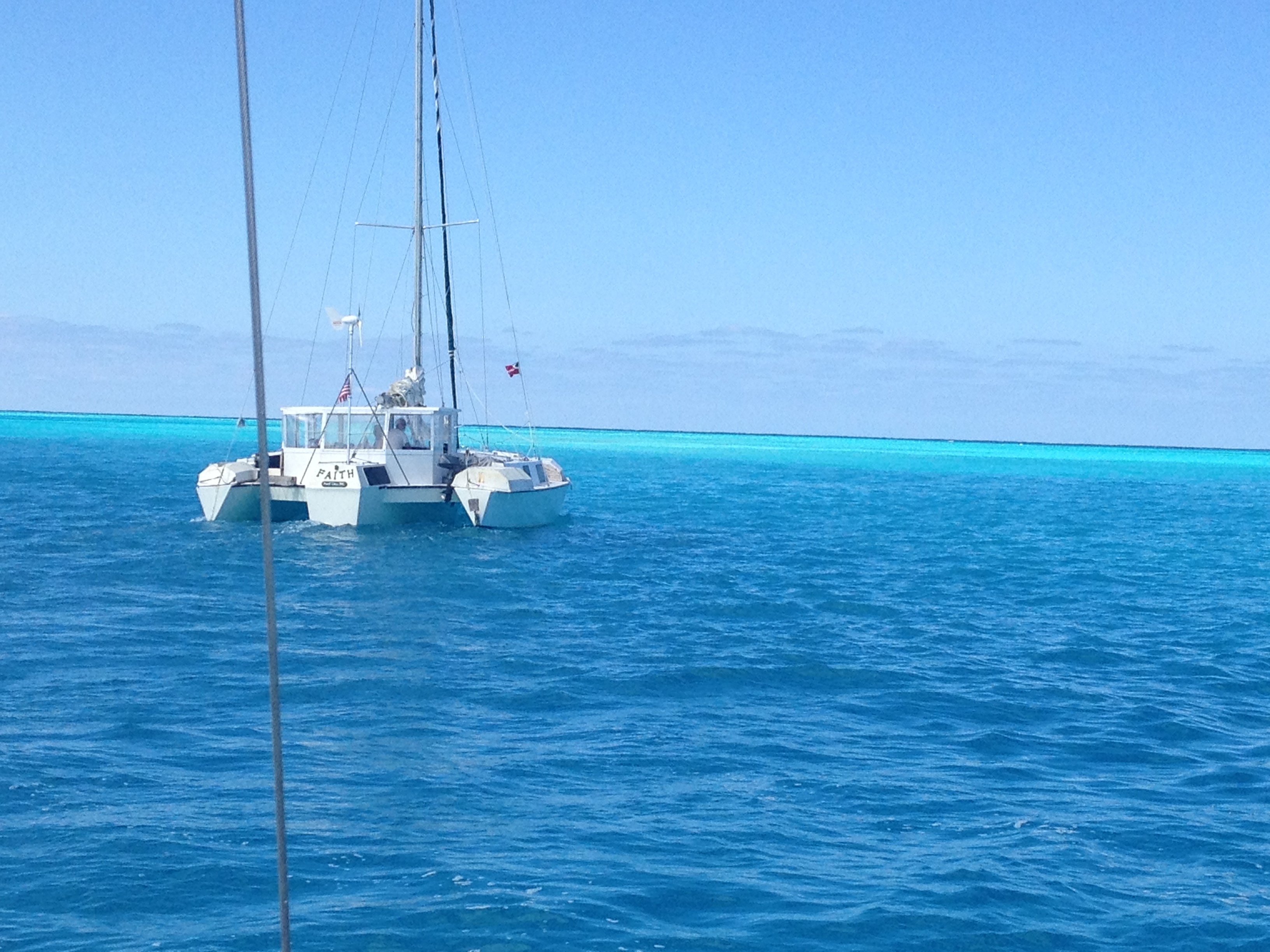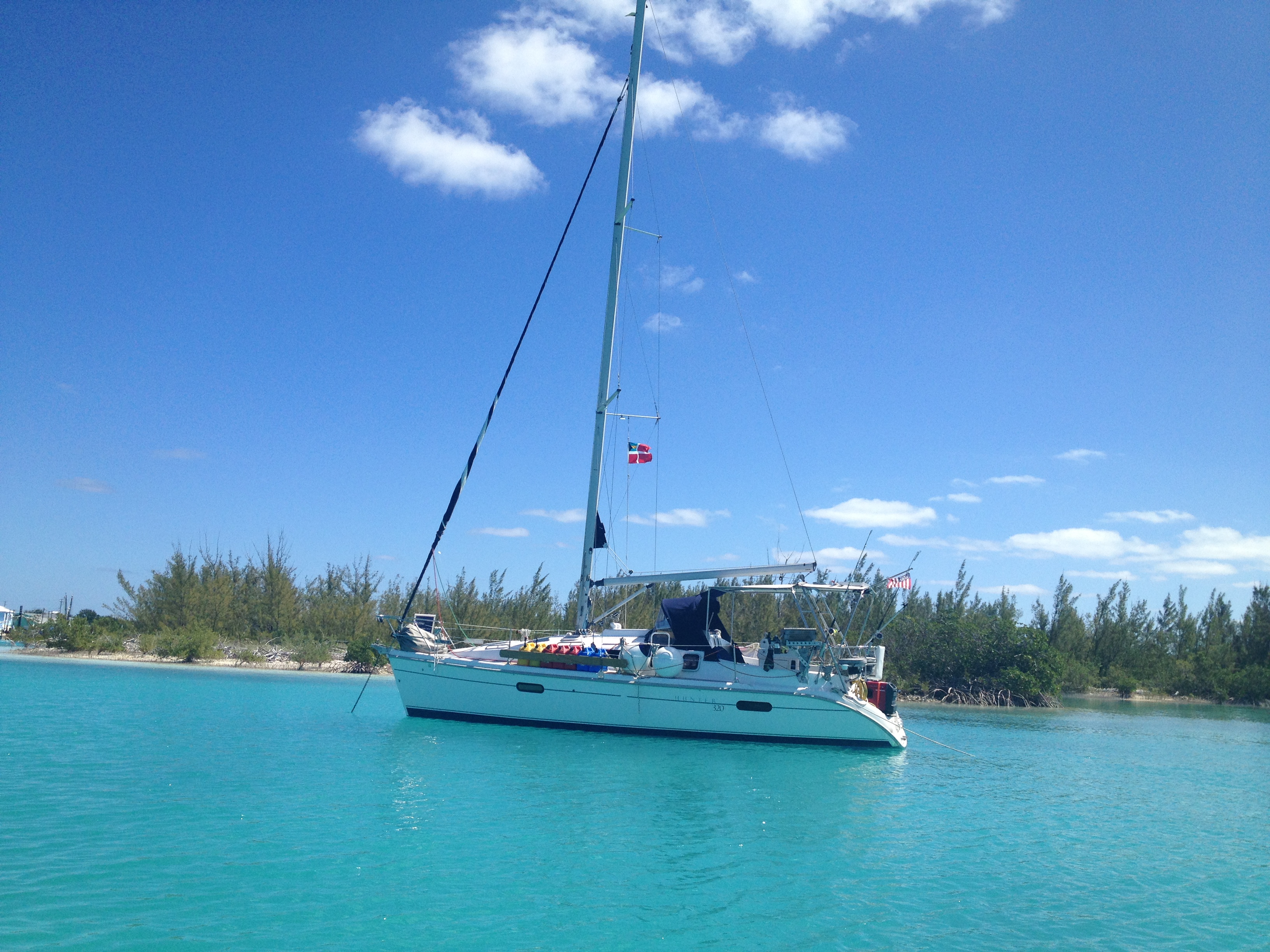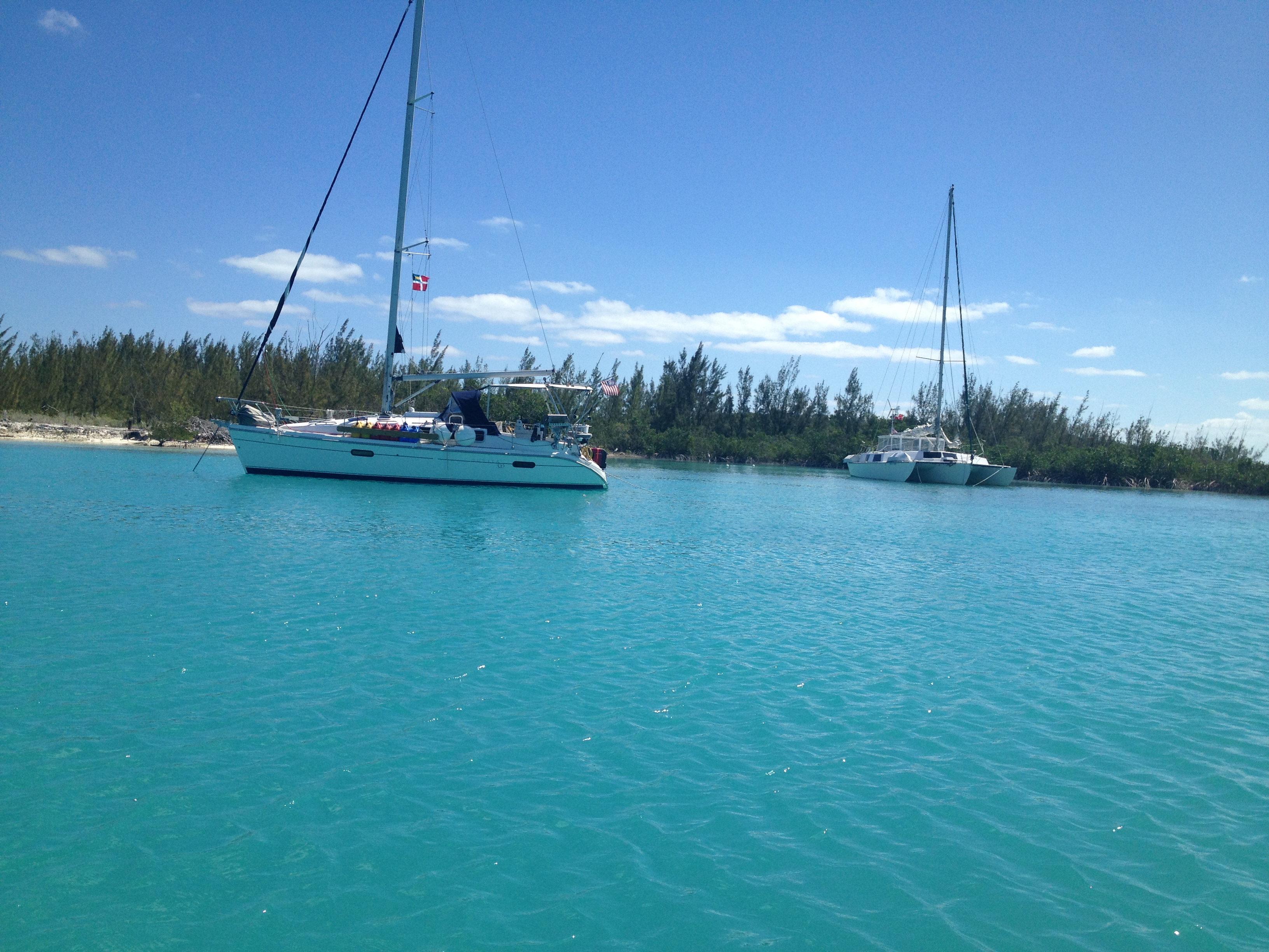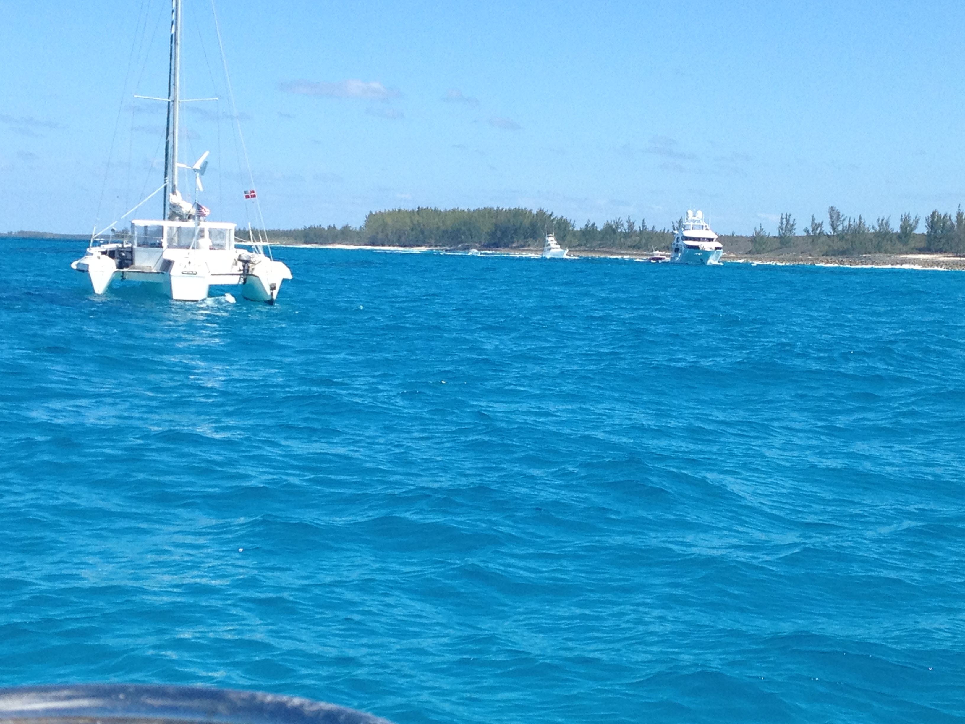 Today we prepare for a trip through the devils backbone and back to Spanish Wells and then on to Nassau on Tuesday morning. We got up as early as we could and headed out to the Backbone.. We spent the morning getting the boat ready for a bumpy ride just in case the Backbone is unhappy. today. We pulled up anchors and headed out to the Backbone with pretty sunny skies and beautiful blue waters. Once we got out to the Backbone we could see the swells. I will try to upload some pics. We grabbed our life jackets and I fastened myself to the life lines. Here we go just like a roller ride through the azure blue. Up and down sideways and surfing we finally made it to the end of the backbone and into calm water by Spanish Wells. WHEW! safe at last safe at last! Once we got anchored we fired up the grill and cooked steaks while Debbie whipped up some wonderful rice and coleslaw for our steaks. We had a wonderful meal and watched 3 episodes of Frasier and laughed so hard, and believe me we needed to laugh. Steve and I are really enjoying our travels and meeting all these wonderful people. Well goodnight everyone we are headed out to Nassau tomorrow.