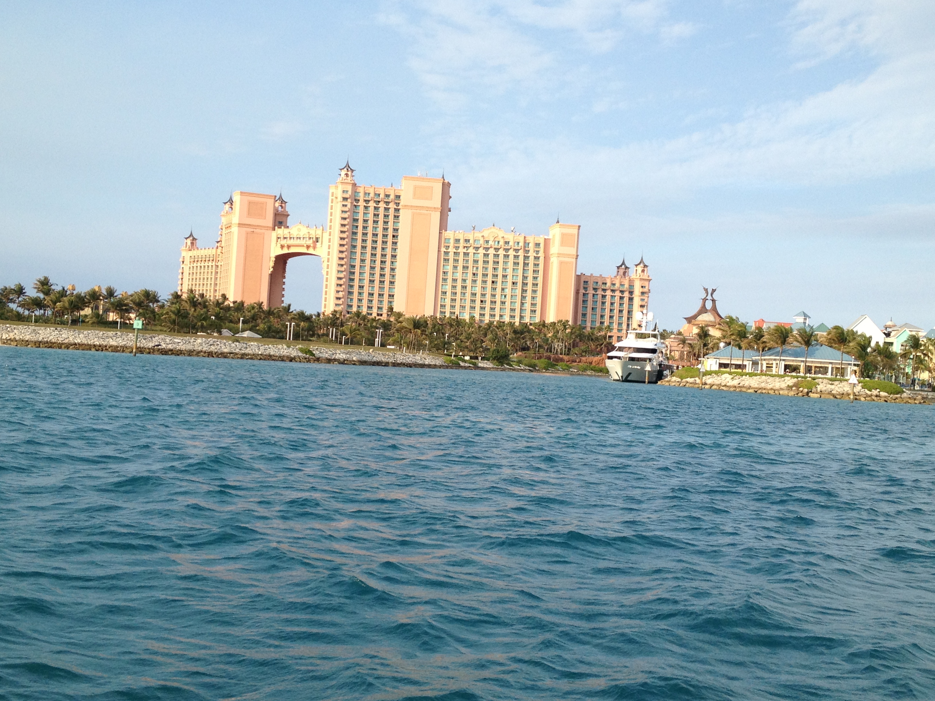 We are on our way to Nassau Bahamas with our friends Debbie and David. Looks like decent weather pretty sunny day, about and 8 hour trip, able to sail most of the way catching 5-6 knots. Just hanging on the side of the boat and watching the beautiful sun hit the waves as we sail. Took a nap in the PM and sailed for a while into Nassau for Steve so he could take a nap. Believe me it is hard to steer for hours on end so we take turns. Steve handles the huge waves better than I do. Today is very nice min to mod waves and a pretty sail. Coming into Nassau the weather was very weird and the swells were way taller than our boat but we just surfed on in to calmer waters. Looking back at our friends the sight of them disappeared by the height of the waves. 🙂 We traveled on into the harbor in calmer waters into Nassau Harbor to anchor out across from the Paradise Islands and Atlantis. Pretty lights at night. We ate at a restaurant called the Green Parrot that had free wifi. That was a fantastic cheeseburger and great company. After that back to the boat and get some rest. Everyone have a great day tomorrow.
