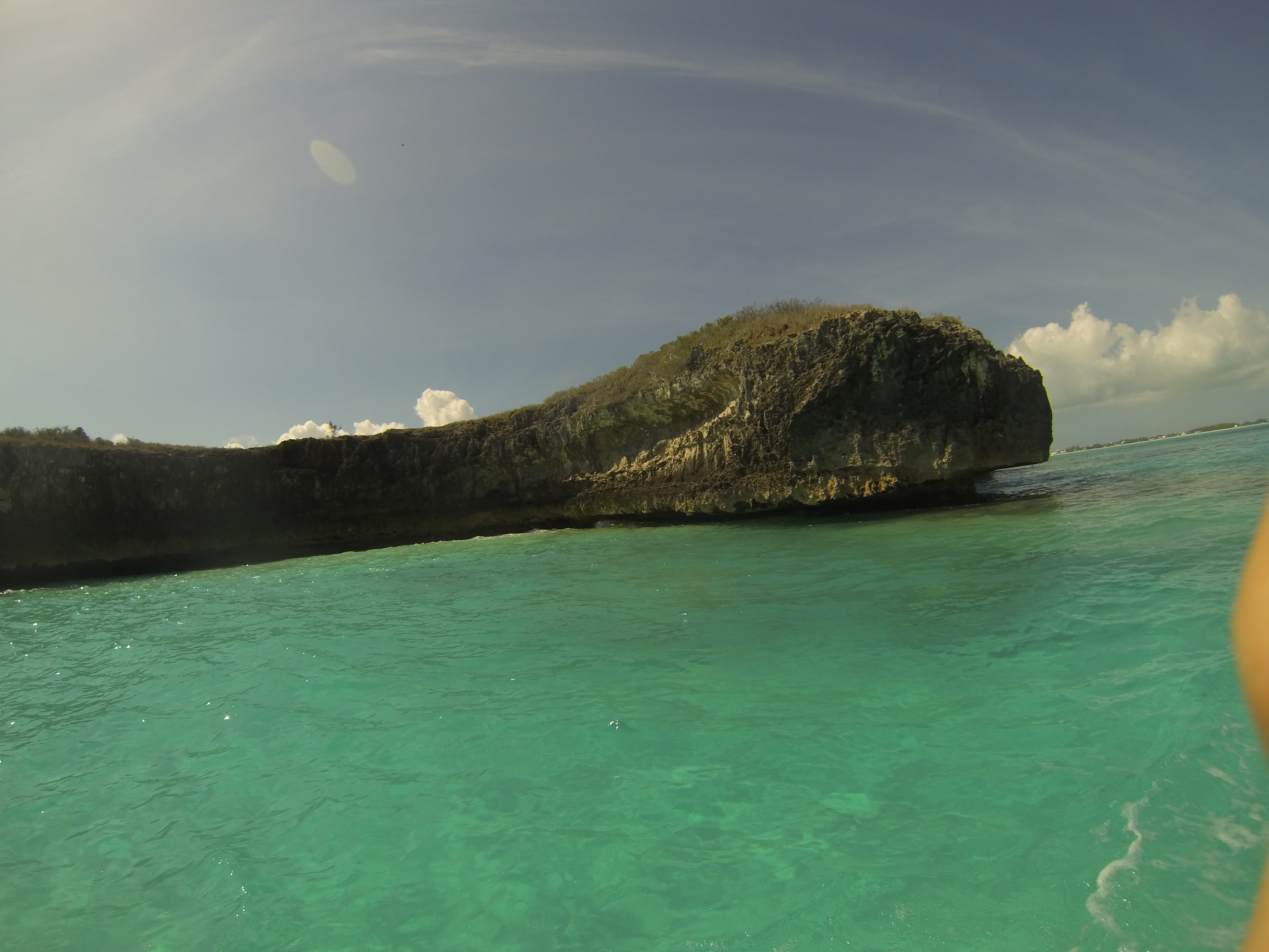 Steve and I took off in the dinghy today. Steve had a surprise for me we took the dinghy and went down the Devil’s Backbone to the beach and a small pathway that led us to the Preachers Cave. It was isolated i did not think we would see anyone there. But there were 5 people there the owner and heirs to Heinz Catsup. It was nice to meet them and they were very friendly. They own a house on Spanish Wells that their father bought in the 1950’s. After we met them we pulled our dinghy down from the top of the beach and started out when Steve mentioned my shorts they were floating in water, OK number one-the waves were crashing on the beach, number two -the current was strong. Well i jumped back in grabbed my shorts a wave almost knocked me over as i bent over and Steve was enjoying the whole circus like show. I finally got back in the dinghy and I did some “speed snorkeling” (Holding my head under water while dinghy is moving over the reefs) and i saw a sea turtle, a lot of big fish and some big huge fish we could not identify that was close to the surface in the waves so i could not see it clear. The reefs are so pretty and i just loved it. Steve would stop when i squealed under water because i saw something awesome. This trip has been so much fun and I am so lucky to have a man who treats me so well. We have had a ball. It is an adventure on its own living on a boat for 6 months.Making grocery runs water runs anchoring out etc etc.. We finally made it back to the town and our favorite place to eat was closed, 😦 Steve grabbed us a lunch to share from the Snack Vault on the island. He came back to the place/store where i get WIFI and found a utube video on how to make an antenna from a strainer, a usb cable and a wifi connector. Now I can get WIFI on boat and don’t have to go ashore to check blog.We had been invited to Joseph and Marina’s house for supper. We had chicken salad, pizza, baked beans, salad and a cookie for dessert. It was a wonderful day with wonderful company. I went back to boat with Steve to enjoy our new found internet connection. Enjoy the pictures.