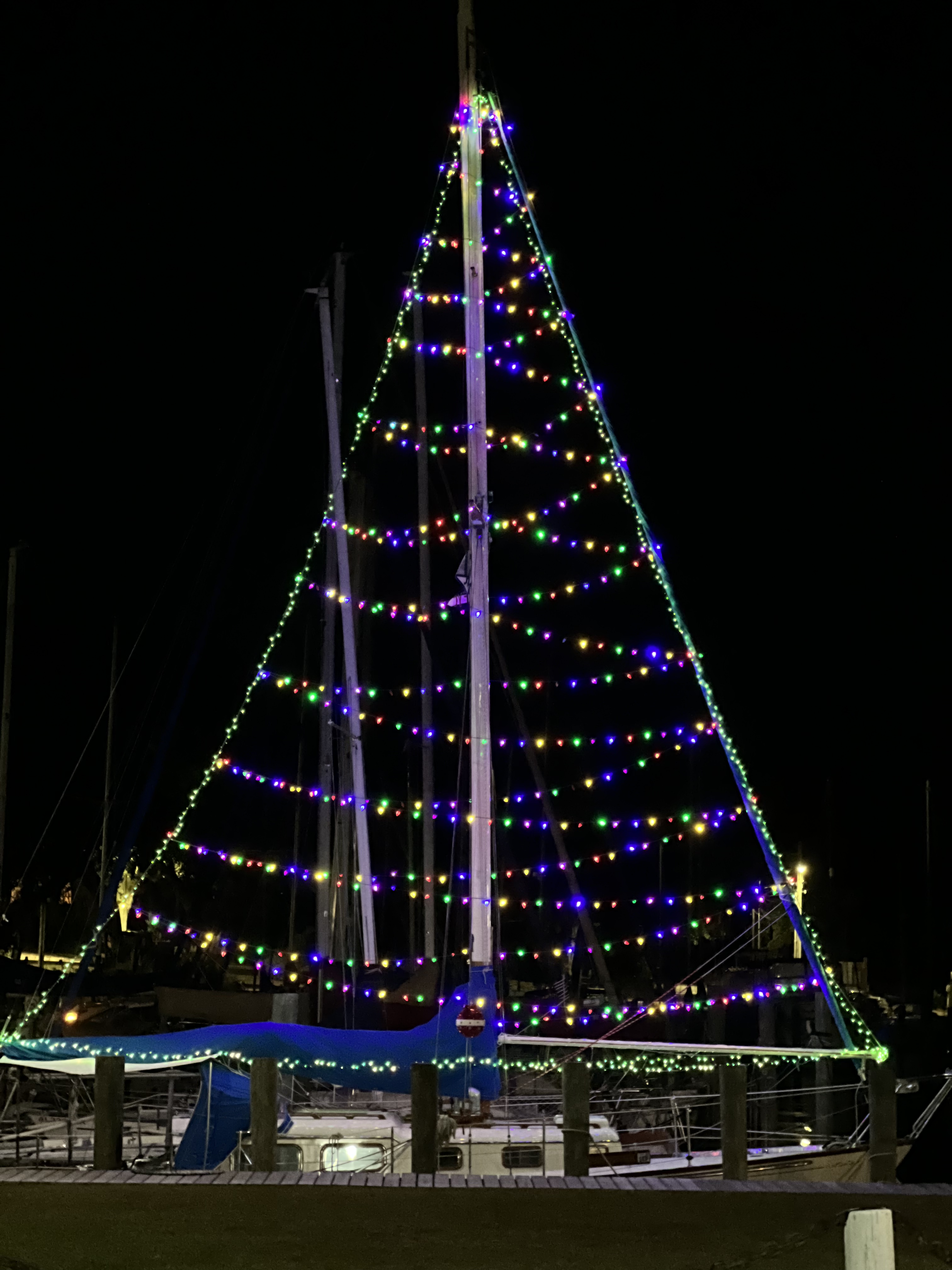 Alright December is here!! We had dinner with Wes and Jennifer at the Fairhope Yacht Club. It was so great! The club was beautifully decorated for Christmas and i could see the Christmas lights on my boat that Capt Steve put up for me.