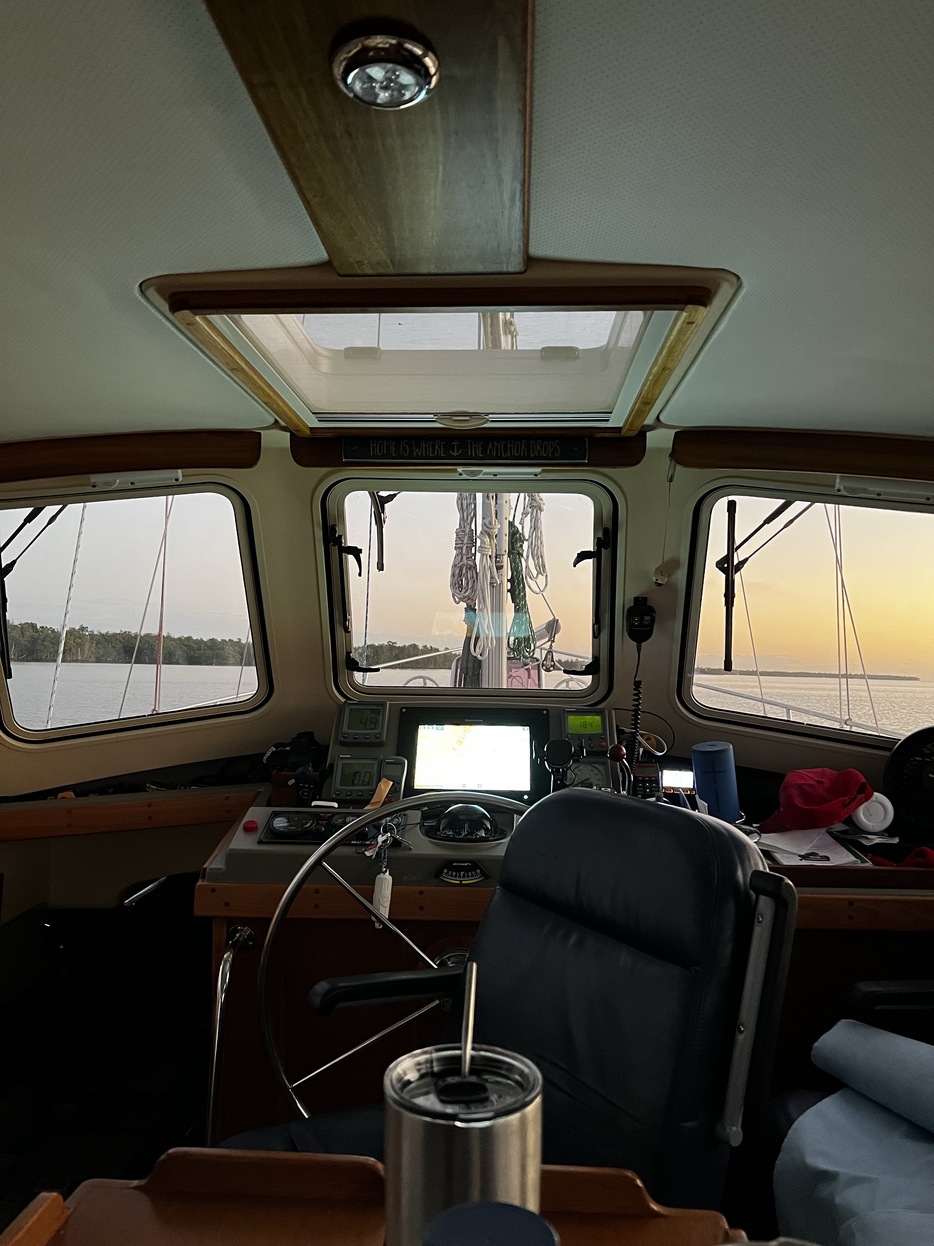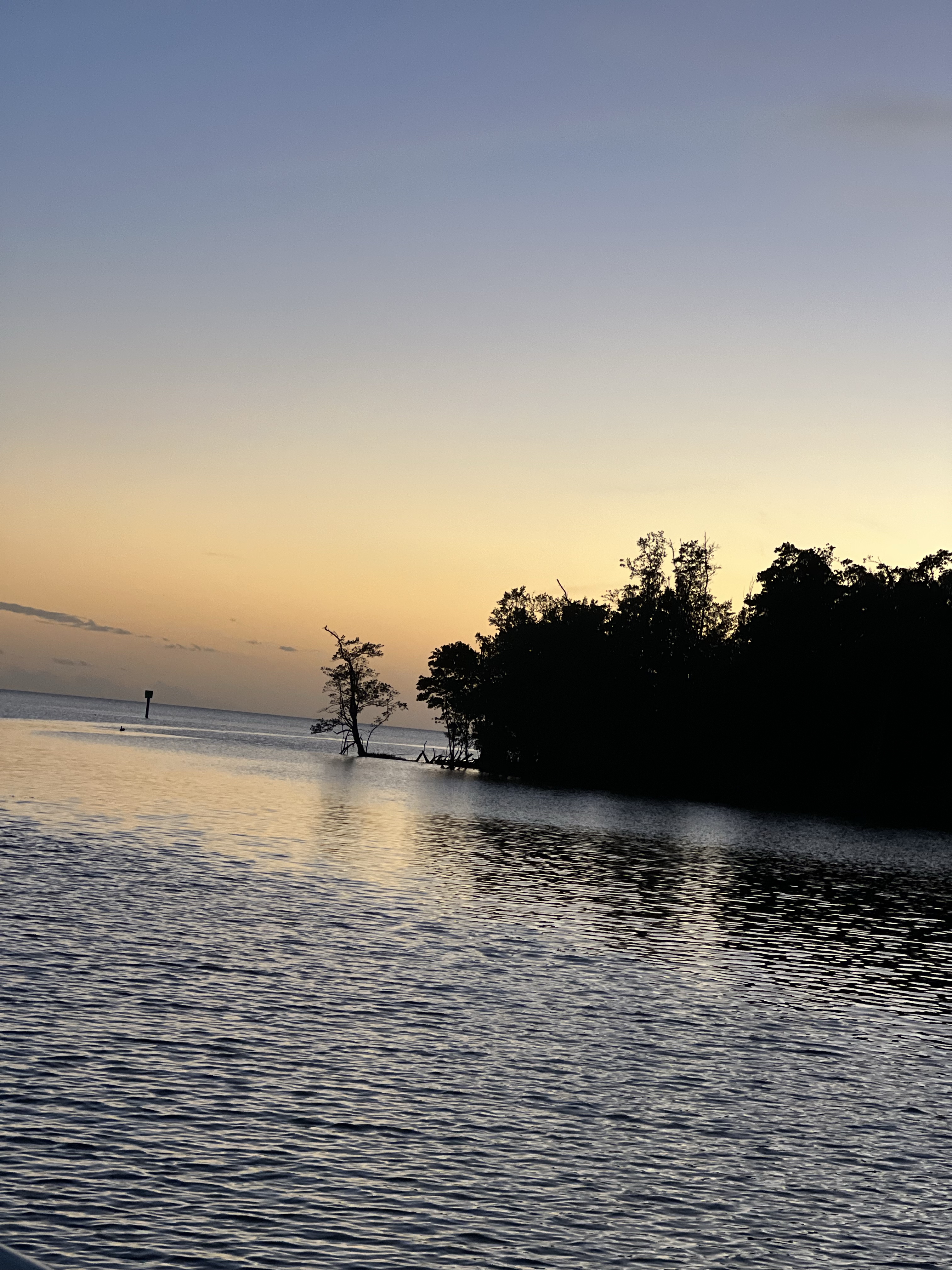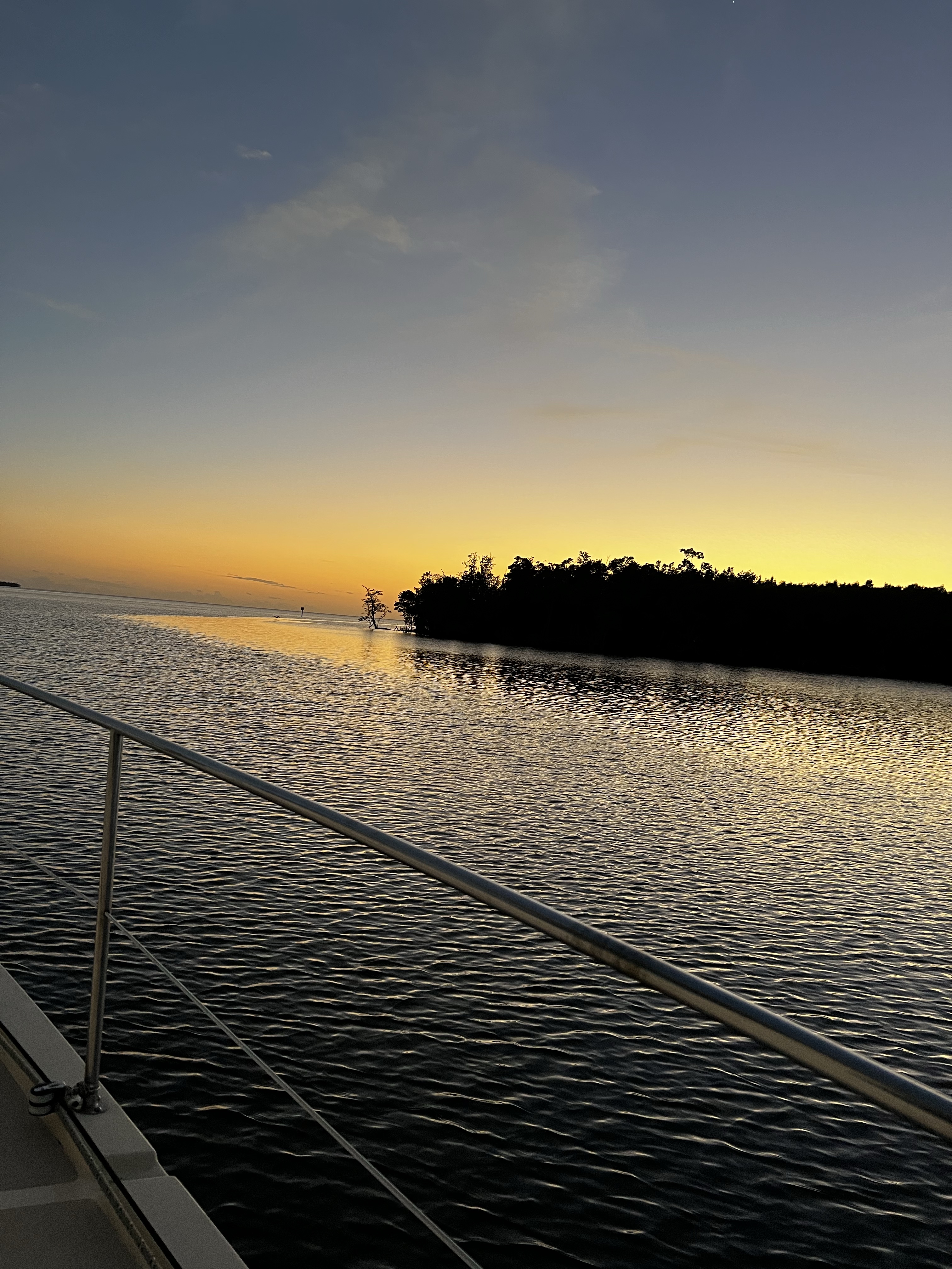 Happy Birthday today to my sister Paula Allen!!! Today we pulled the anchor and set off to shark island anchorage for the night and will head to Long Key in the keys tomorrow. The sail was good with both sails out and the wind helping us along at 10-15 knots. It was a nice and uneventful trip coming into the anchorage. NO swimming here as it is a gator area with many many little red eyes that light up at night when you shine your light on them. I sat and watched a pelican diving into the water repeatedly trying to catch a fish. He must have been after a tricky fish. The serenity was so nice with the calm water and the many different colors of the sunset going down behind the boat. Barry and Andrea anchored out close to us, it is a lot of fun having them with us on this trip. Not too much happening here so I will sign off and watch the rest of the sunset.