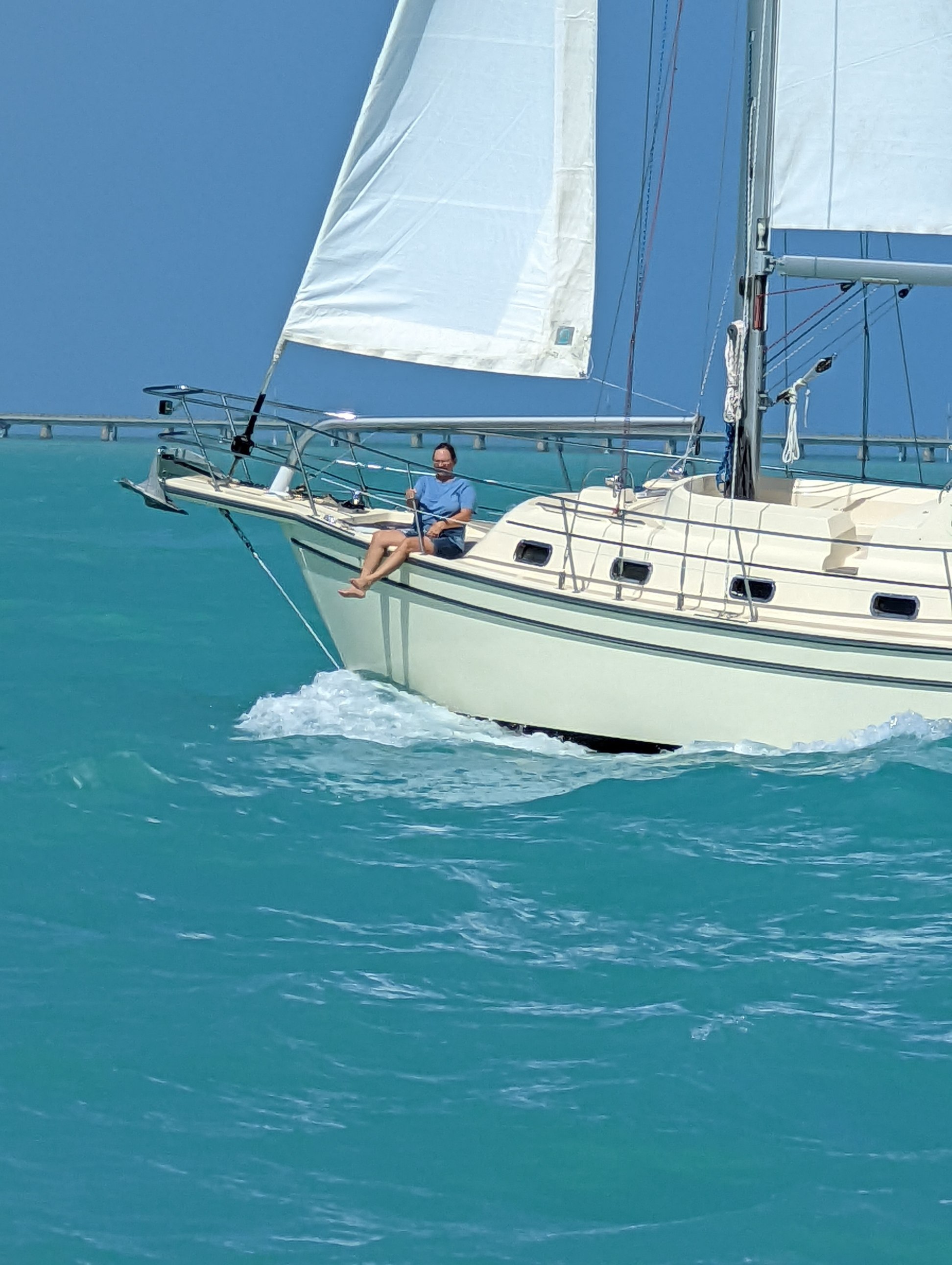 So we arrived in key west on February 10 and found a place to anchor next to the mooring field. No mooring balls available and 4000 a month to go into marina. So we anchored out hoping a ball would become available. Andrea and Barry went into Boca Chica military base marina. Much cheaper there. We stayed in for the night and planned our trip into town for tom Feb 11.