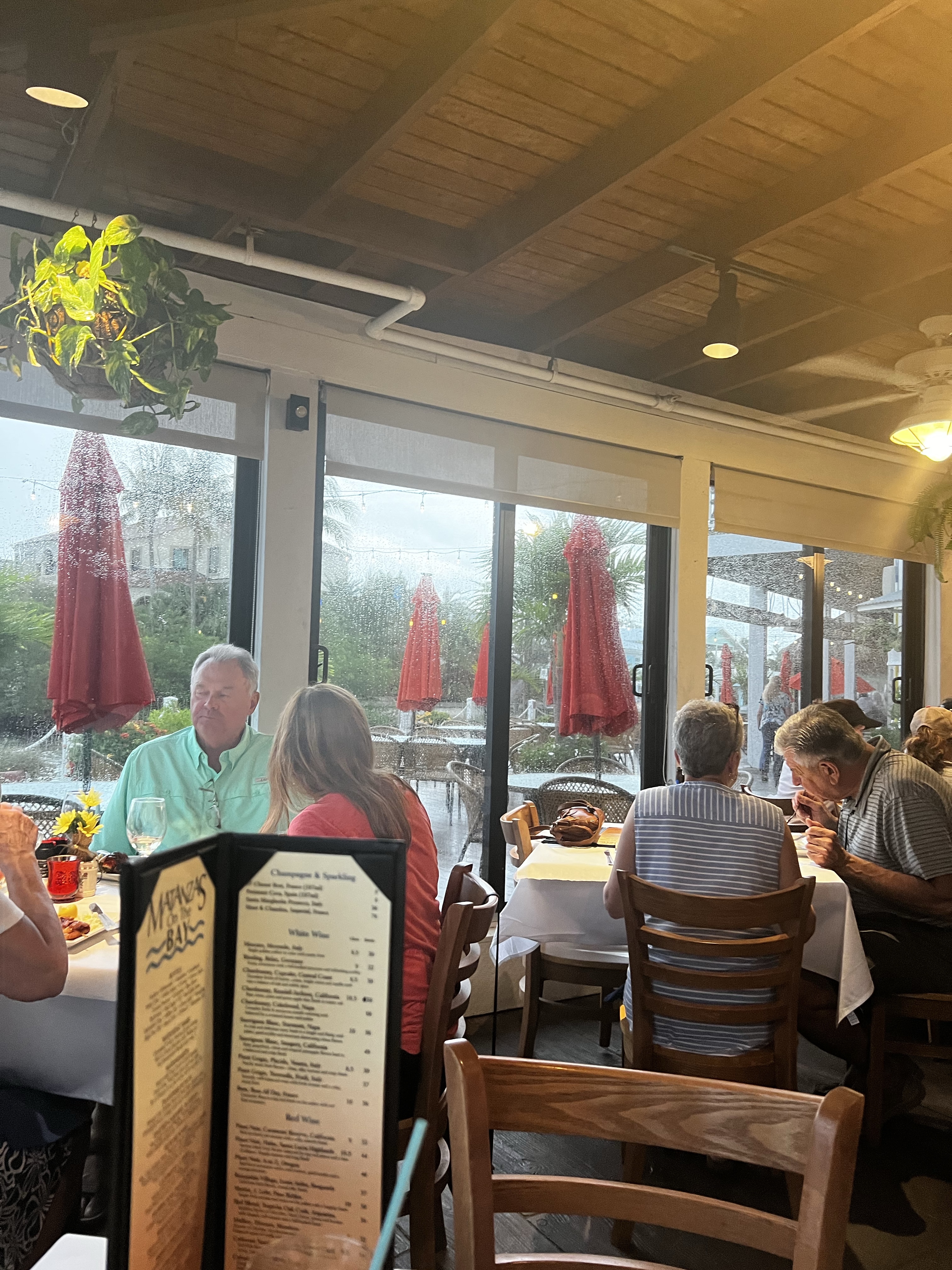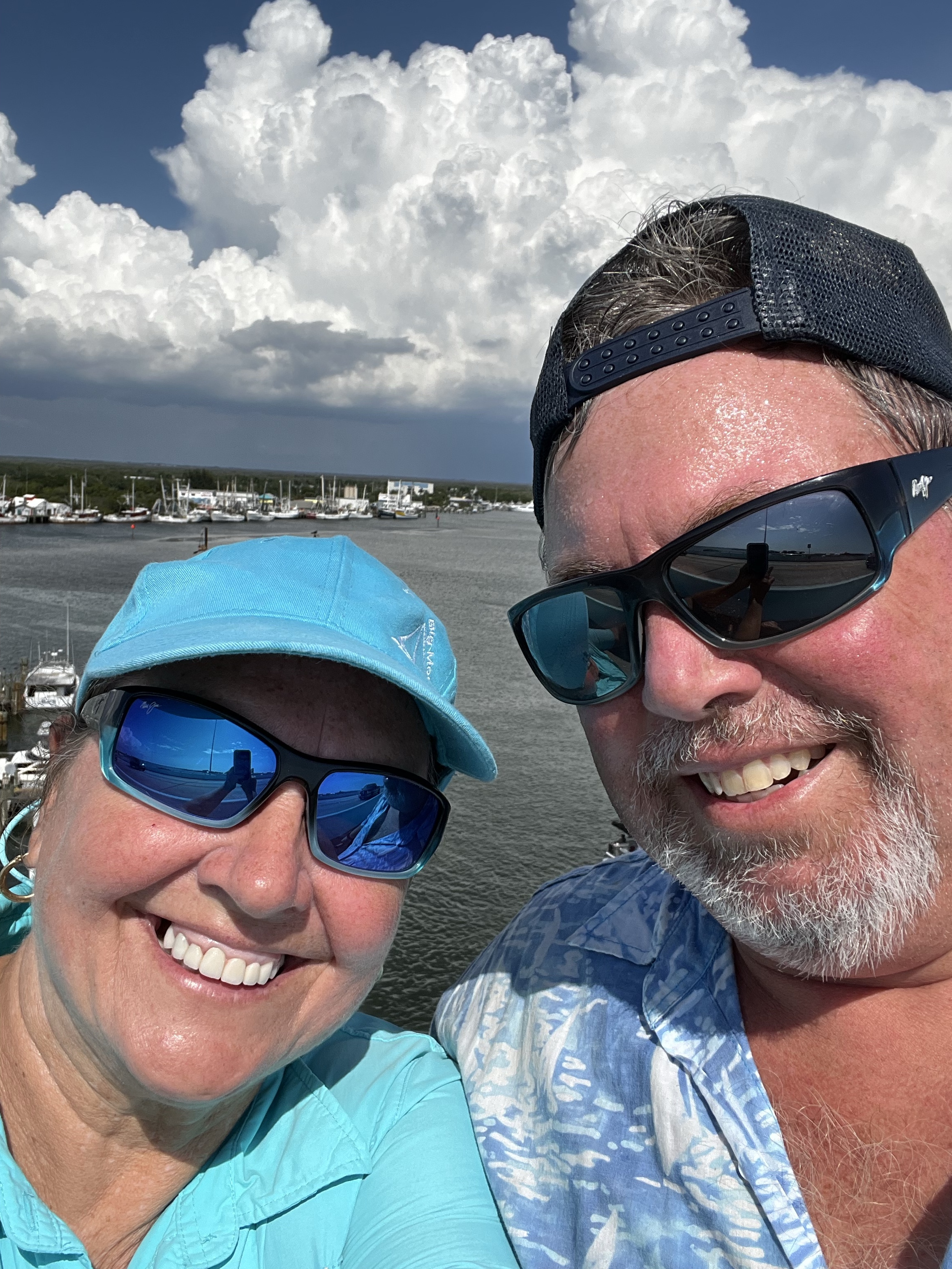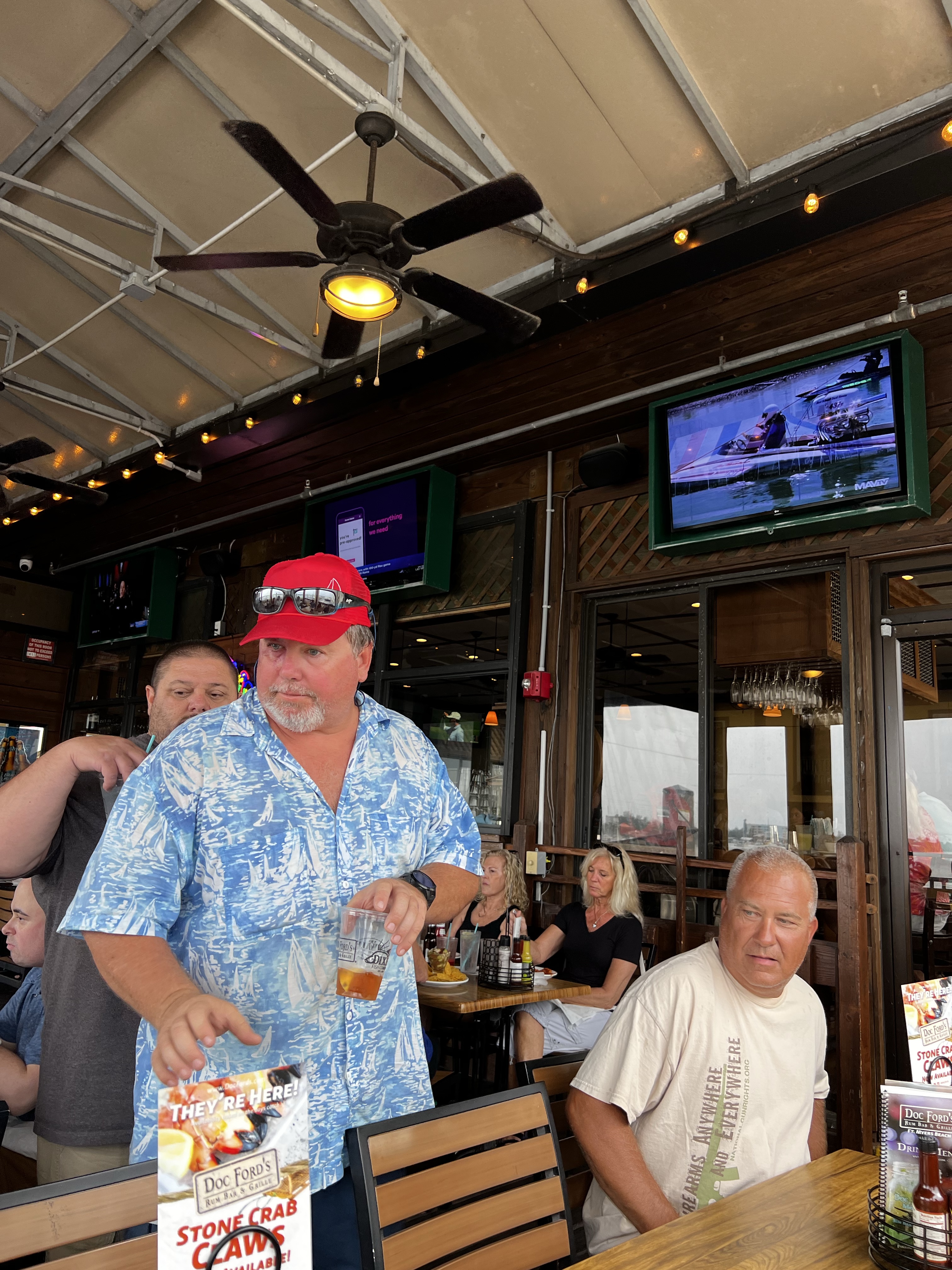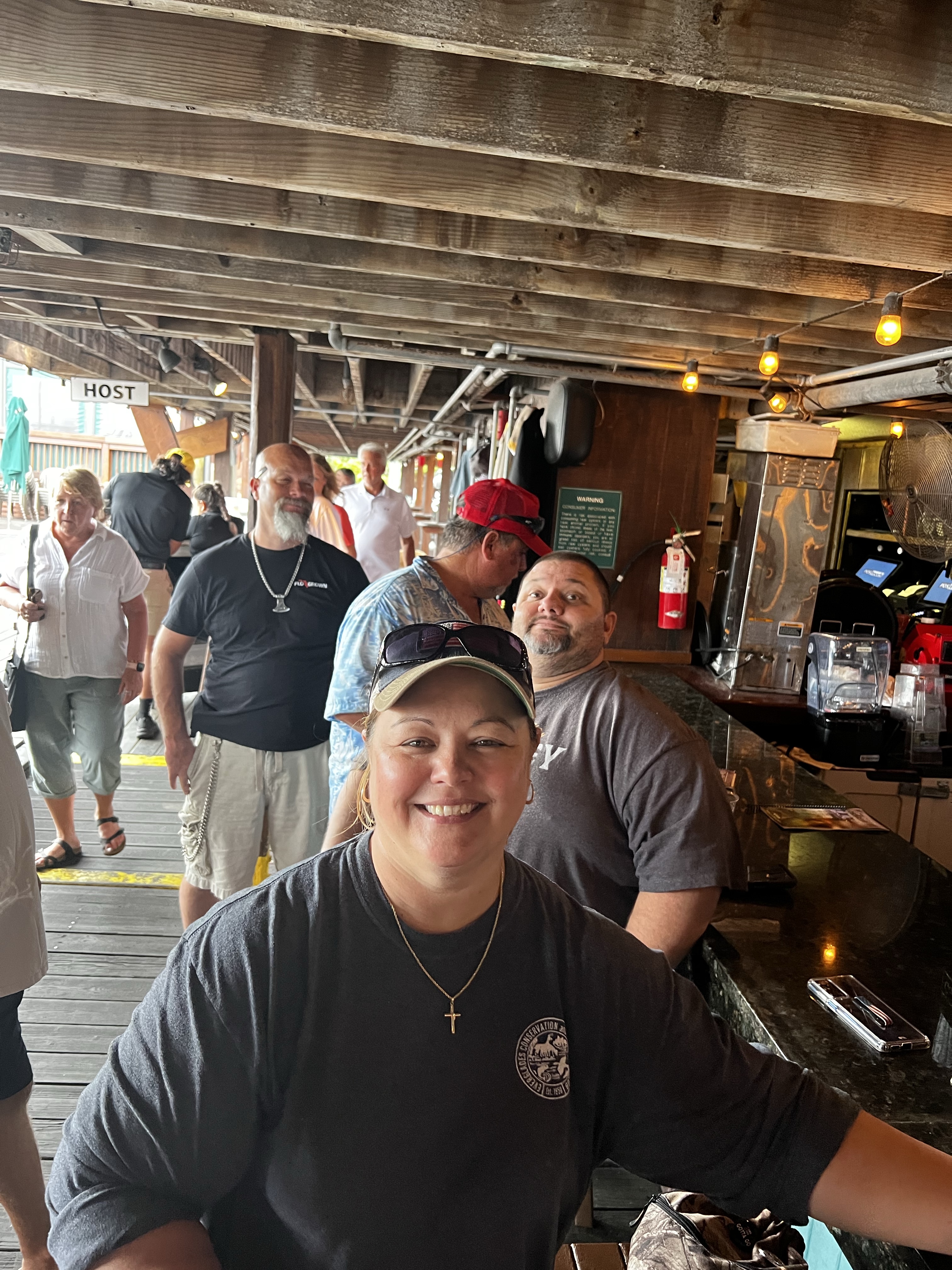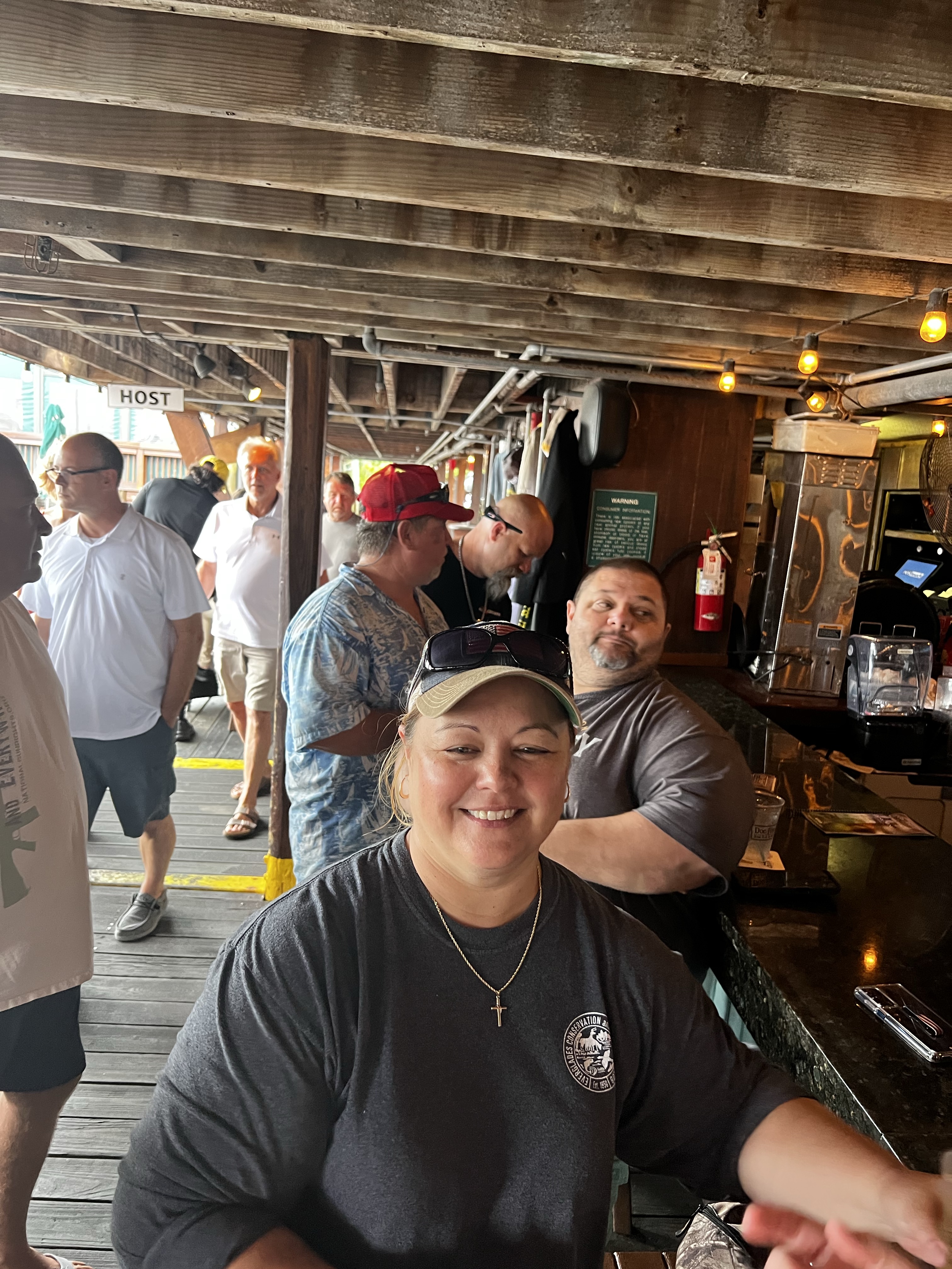 Getting the boat ready for company today! JJ, Patty, Tasha,and Bob are coming to the boat and to eat out with us. Got the boat ready and went to get Patty and JJ at the dock. It looked like rain but we made it to Doc Fords to eat with everyone but it came a downpour while we were there. We had a great time with everyone great food and good good times. Well…since it was raining Tasha and bob didnt come to the boat, but JJ and Patty stayed all night with us. OH and i forgot our dinghy motor died on the way back to the boat and would not restart so JJ and Steve spent the evening trying to fix it to no avail.( Barry and Andrea towed us back to the boat.) It was a great day any day we get to see our awesome friends!!