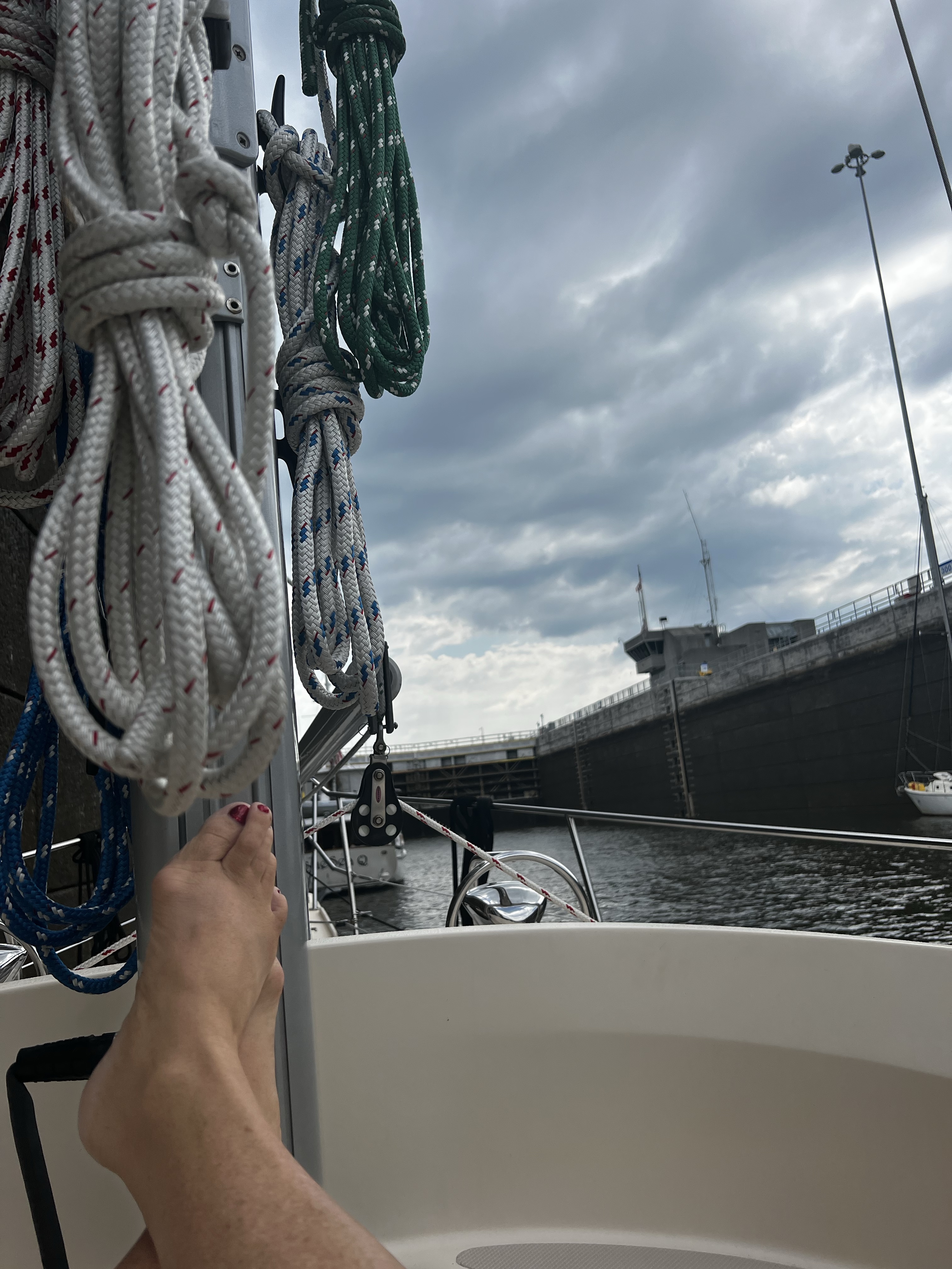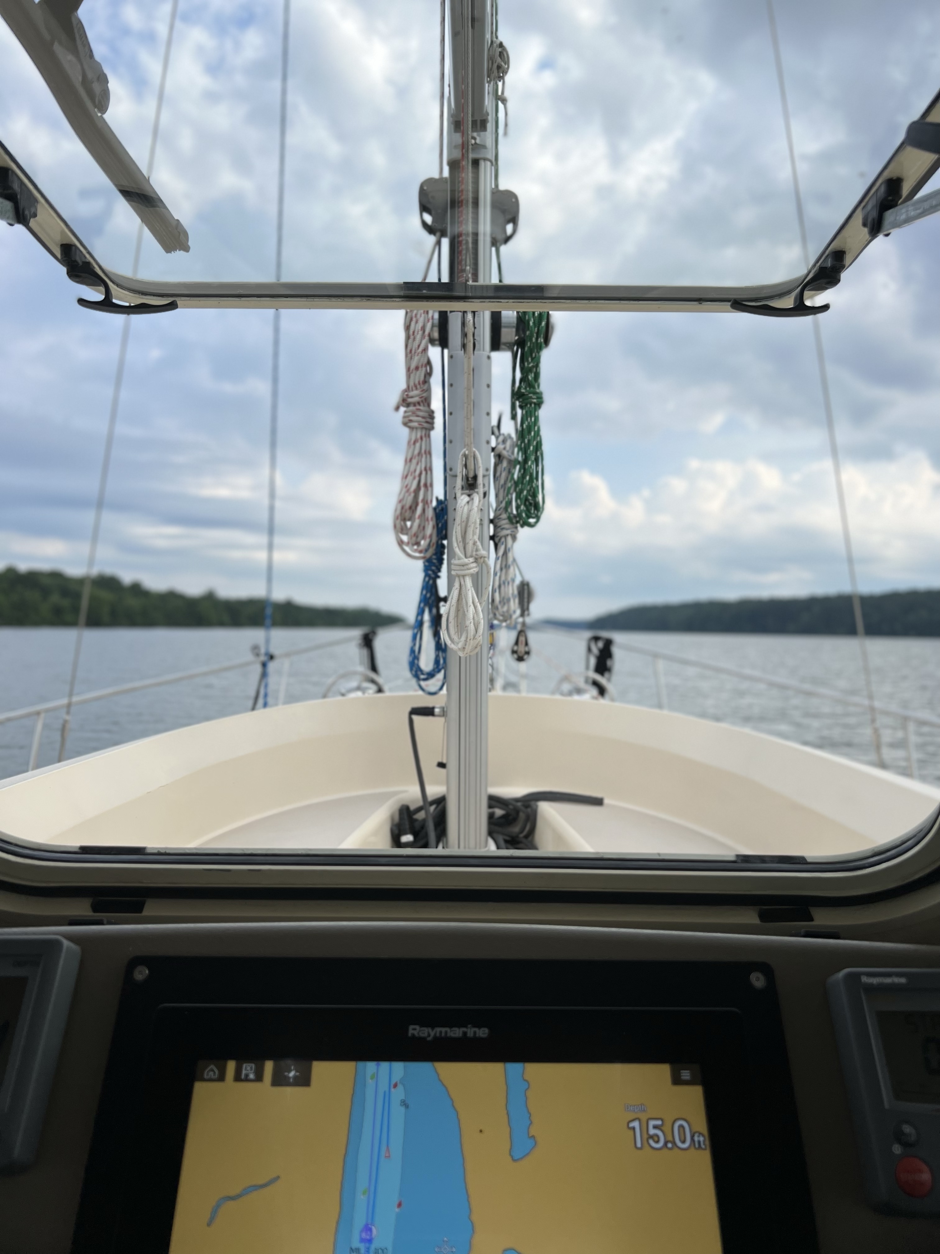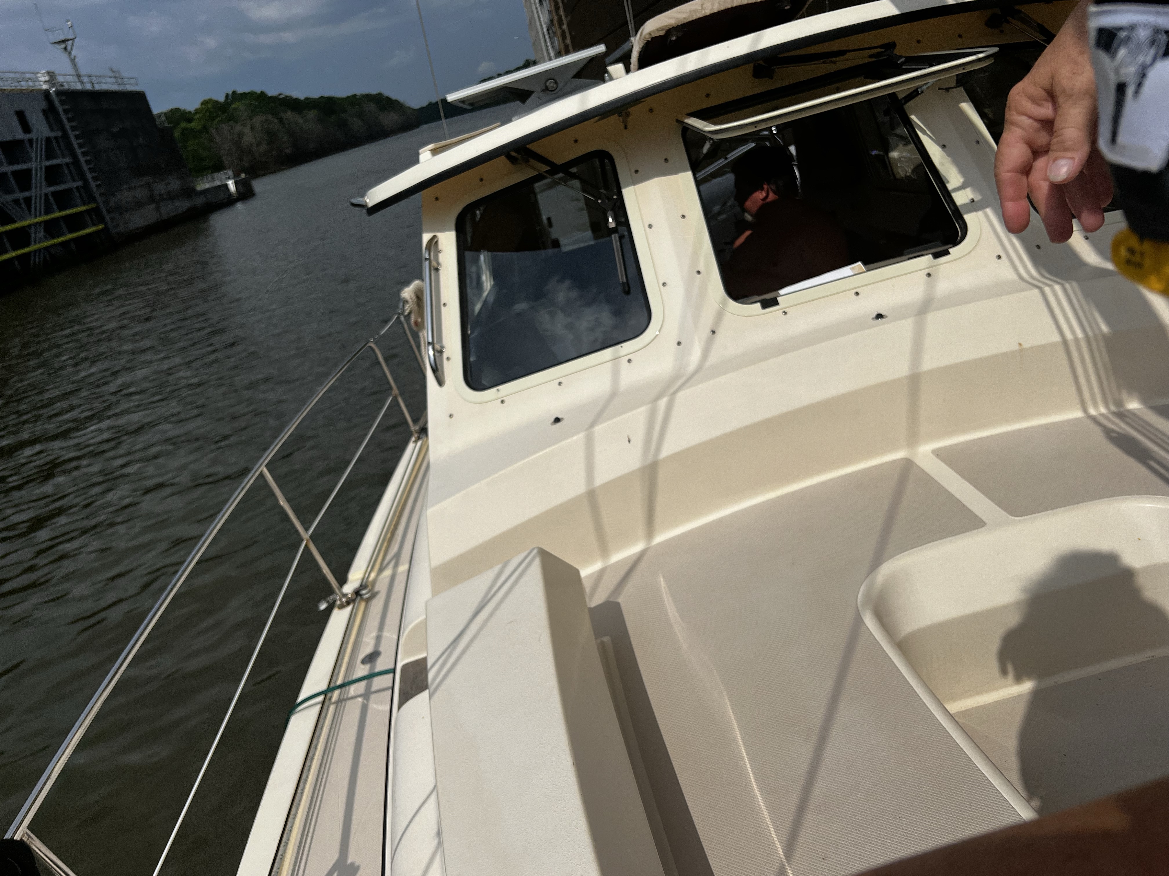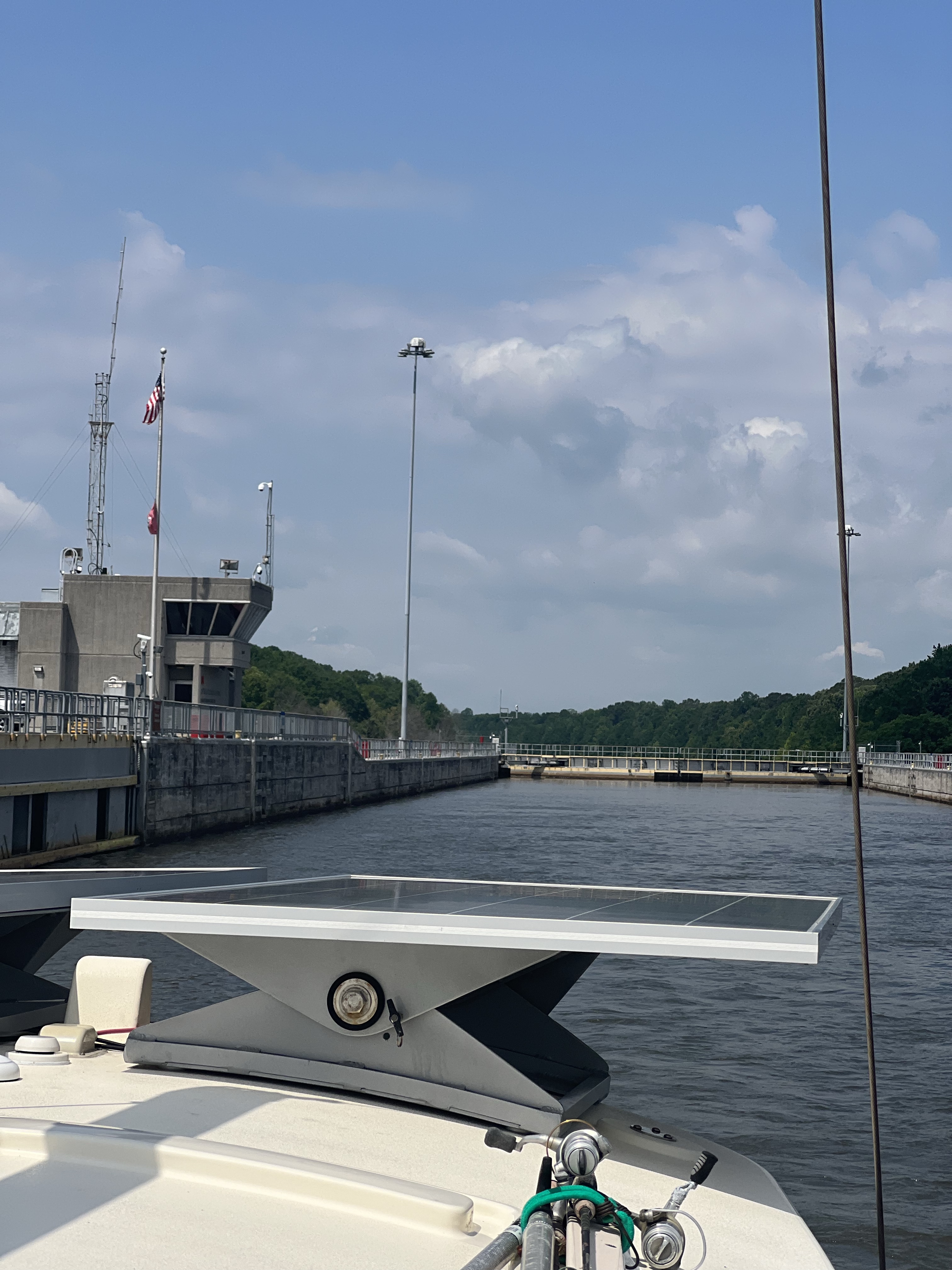 Woke to a beautiful morning at Midway Marina. Headed toward Fulton Lock to start our day of locking through some locks today! Fulton lock is 391.1 MM on the TTB and 4 more to go on the tenn tom! While waiting on the lock to open (after the fulton lock), Andrea decided to blow some bubbles from the bow of her boat lol. They are so pretty catching the sun and shimmering until they touch the muddy dark waters of the TTB and disappearing forever. We met some other boaters on the way up the TTB headed toward Pickwick lake. One sailboat and several other motorboats. Most boaters are courteous and nice others not so much(esp the motor boaters when they see a sailboat). Not sure why.