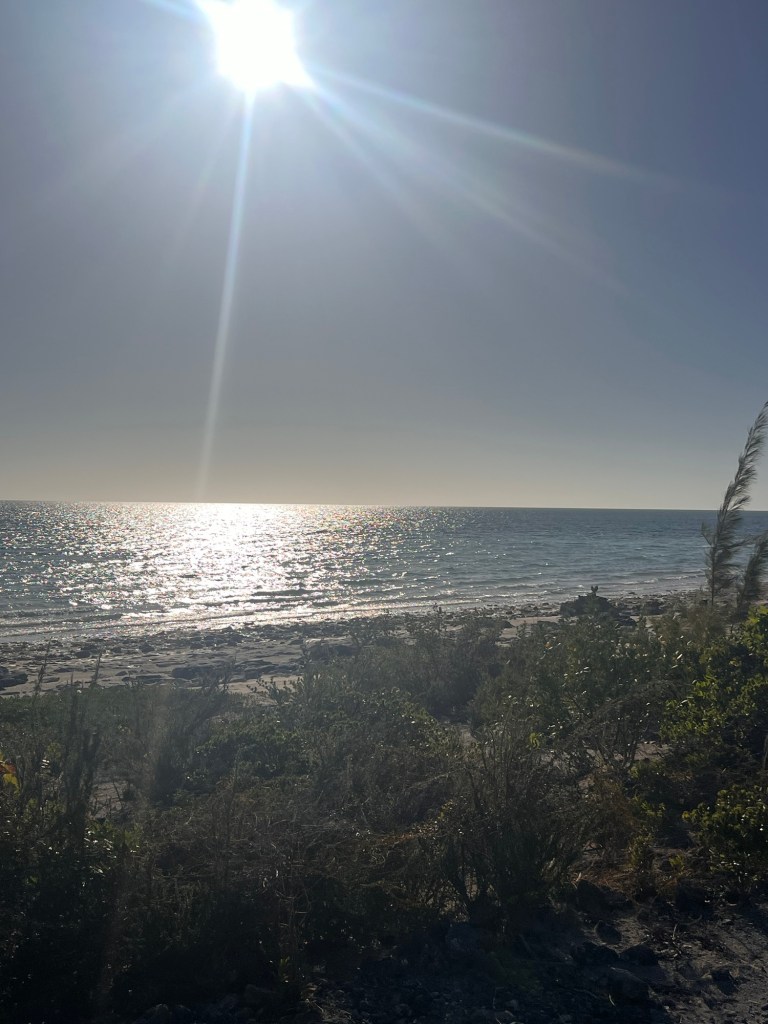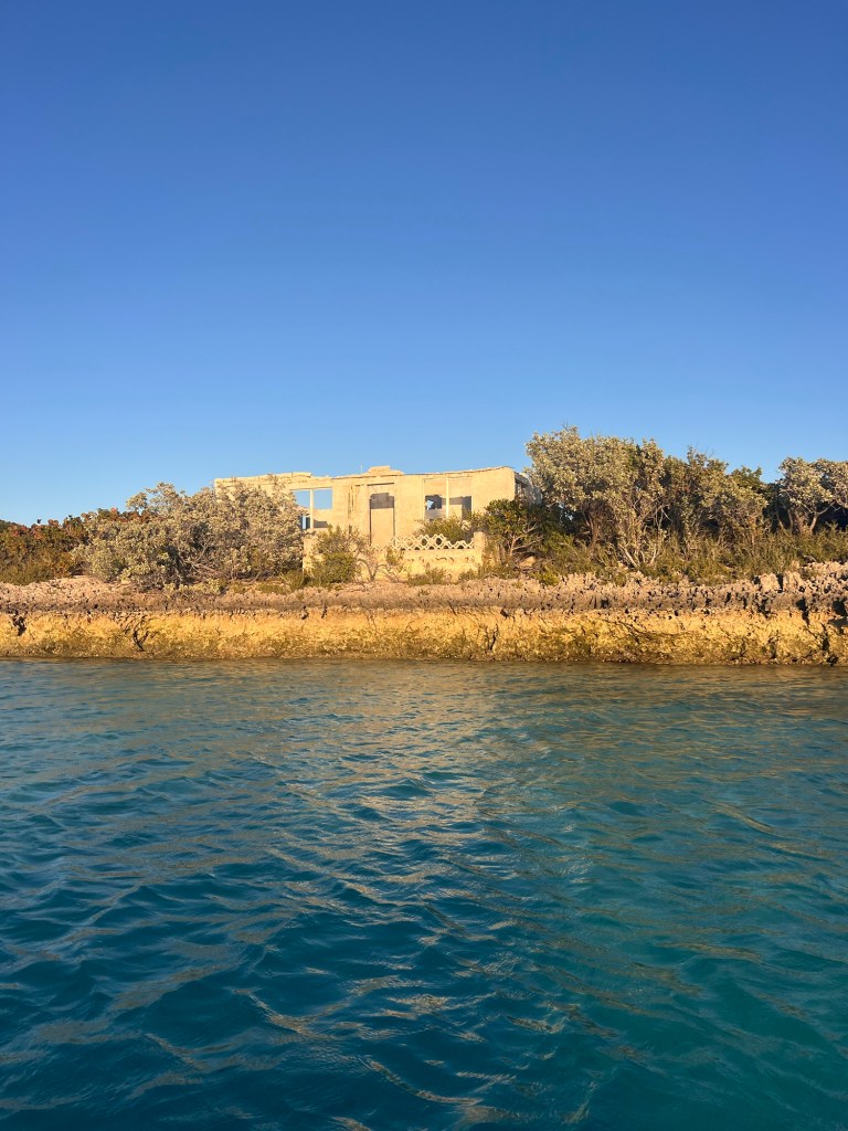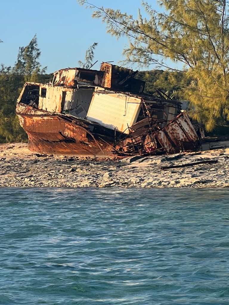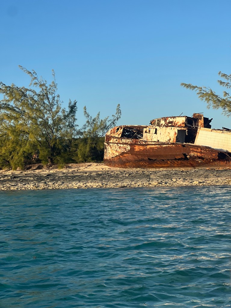 We sailed to Farmers Cay today. This cool little island has a small store/bar at the dock. We beached our dinghy’s it’s easier that way, although you get a little wet and sand filled sandals😂. There were some cool sharks and stingrays hanging out in the bay. We walked over the sandy beach and made our way to the dock to check out the store and buy a drink. I had a Grape Fanta, sold to me by cashier /bartender/ policeman! It’s a small island with an airstrip and they have a regatta( small sailboats racing). A lot of people come to the island for this event. We walked across the island all the way to the airstrip and regatta landing. The restaurant was closed but we sat on the tables with thatched roofs outside and just enjoyed the view. I picked up thatch chair and sat it on a rocky ledge on the beach and relaxed. I wish my little buddy Jett and his family was here with us. I want to share the ethereal beauty of this place with my family! There are so many abandoned houses resorts and businesses on these islands. The little grocery store had minimal but good basics. We had to go to her house and ask her to open up for us. She was happy to do it! In the small islands they aren’t at their stores all the time but will open up if you need them to. I love to ride around in the dinghy looking for old abandoned places. And find cool places to hunt for little beach treasures. We stayed here for the night and decided to hit the next town!