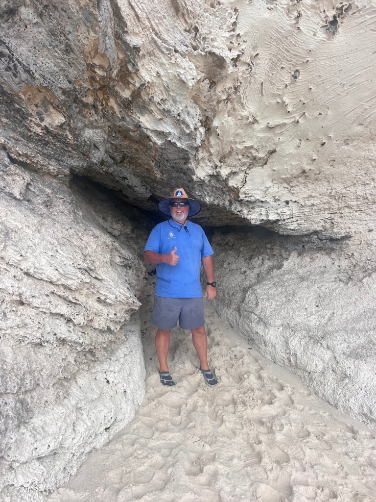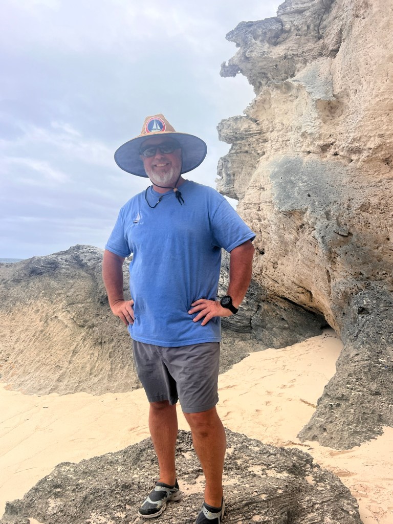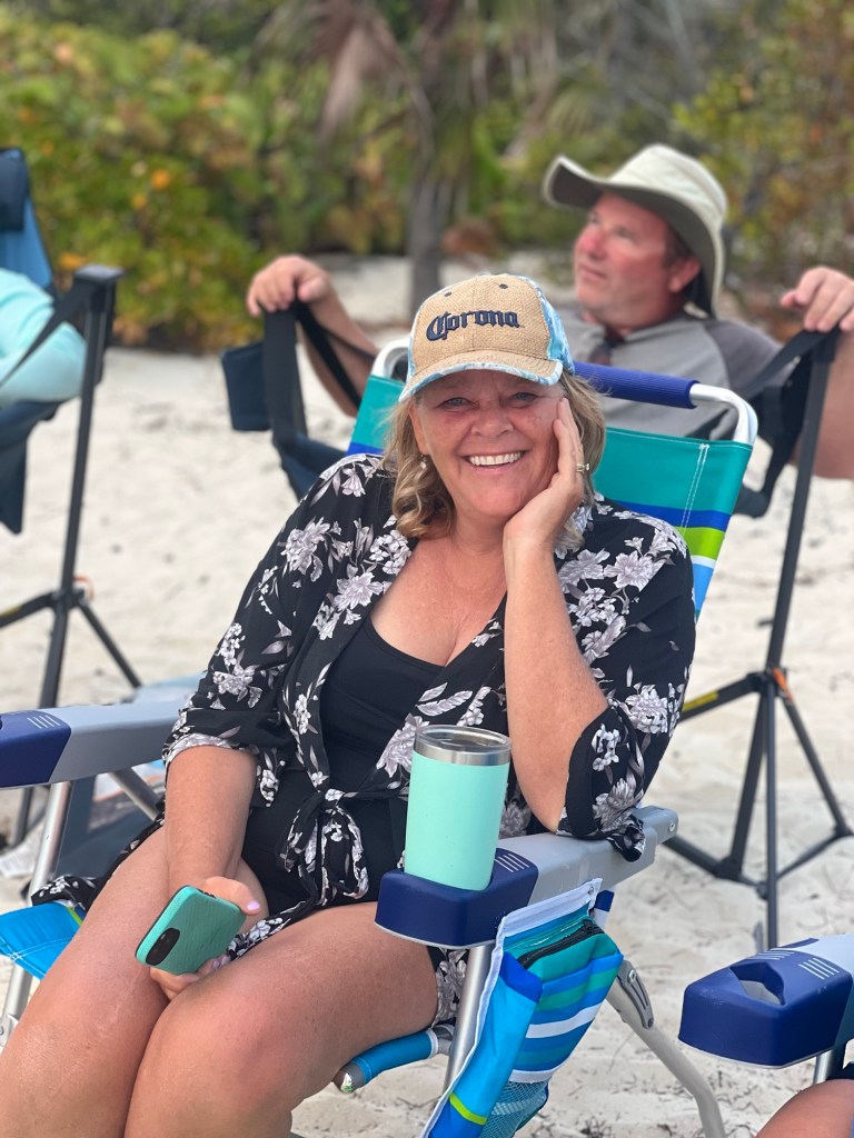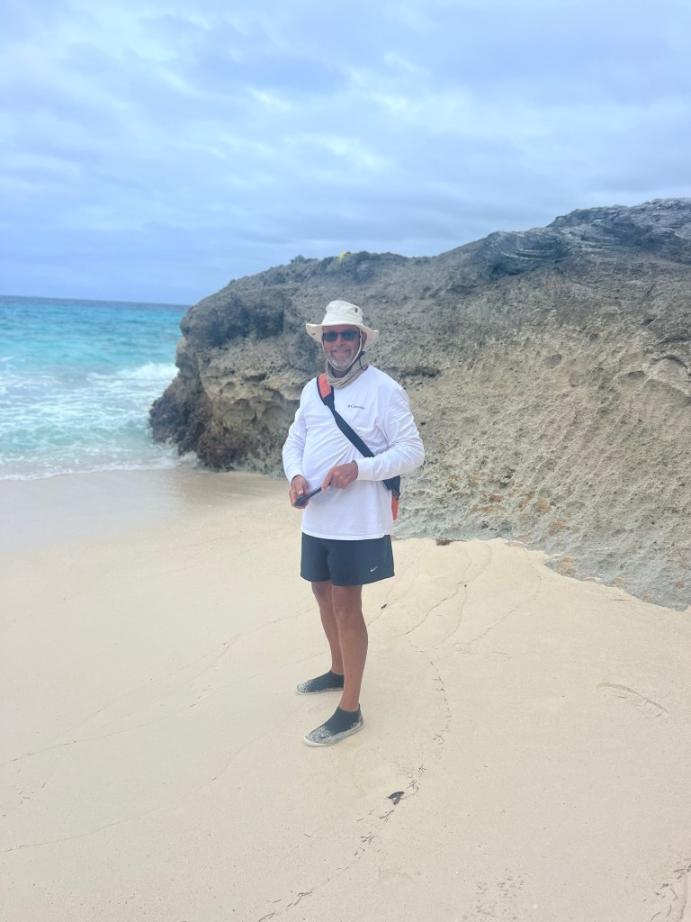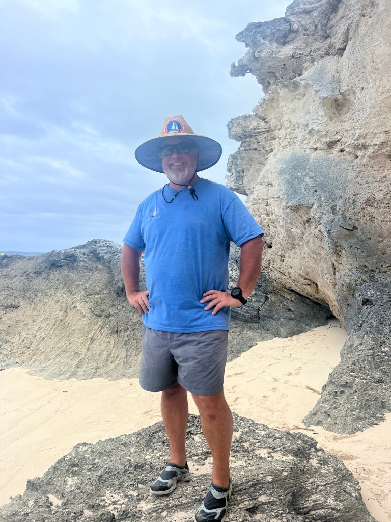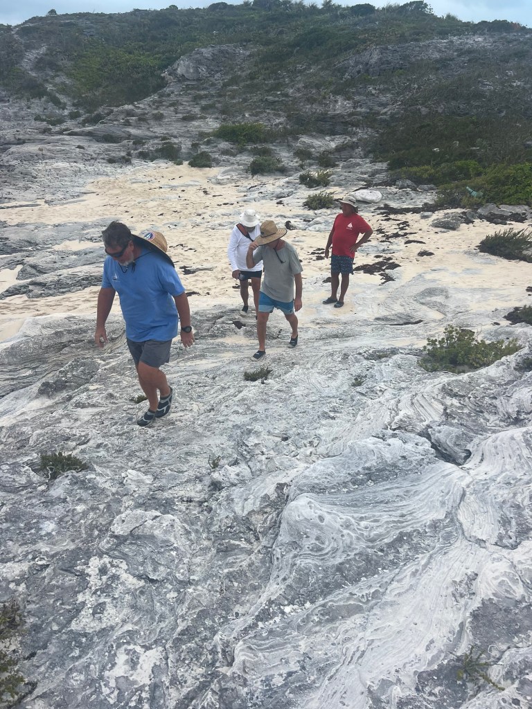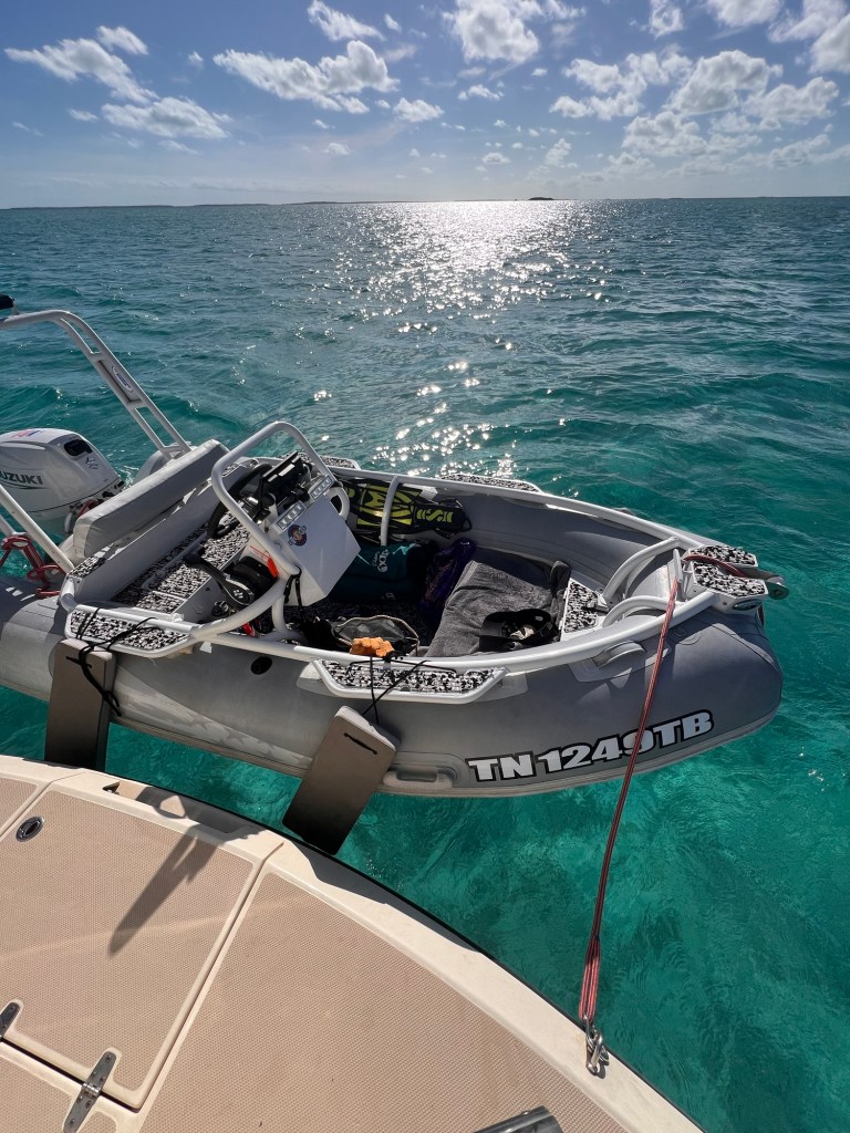 So we came into Rudder Cay last night and here we are at Rudder Cay. This island 🏝️ is owned by David Copperfield ( a famous magician in the 80s I think). The islands say no trespassing but you can sit on the beaches up to the high waterline. No one can own the water. He put a mermaid statue and piano made of stainless steel about 20 ft underwater. You can touch it at low tide if you’re snorkeling dive down and touch the piano or mermaid. So cool!! He also has one huge area made up of 11 small islands together to create one resort area. If you have a couple hundred thousand you can stay at his places for a week! We would head over to a protected cove beach anchored out about 20 ft from the beach and stepped off the dinghy into the shallow water. Walked to the beach and set up what I called my tinker toy chair. You have to put the tubes together then add the rip stop seat cover on it. I love it! Good times great friends!