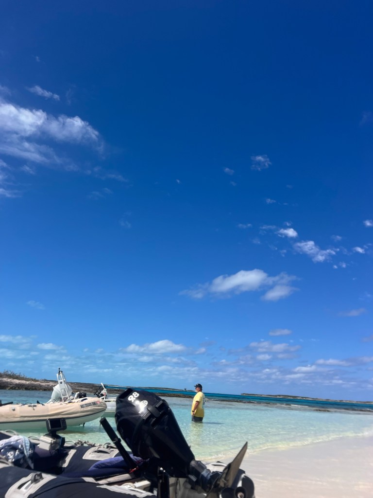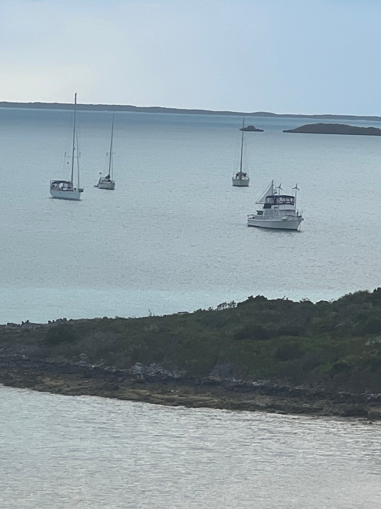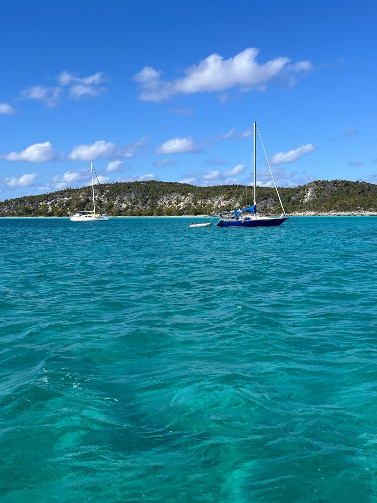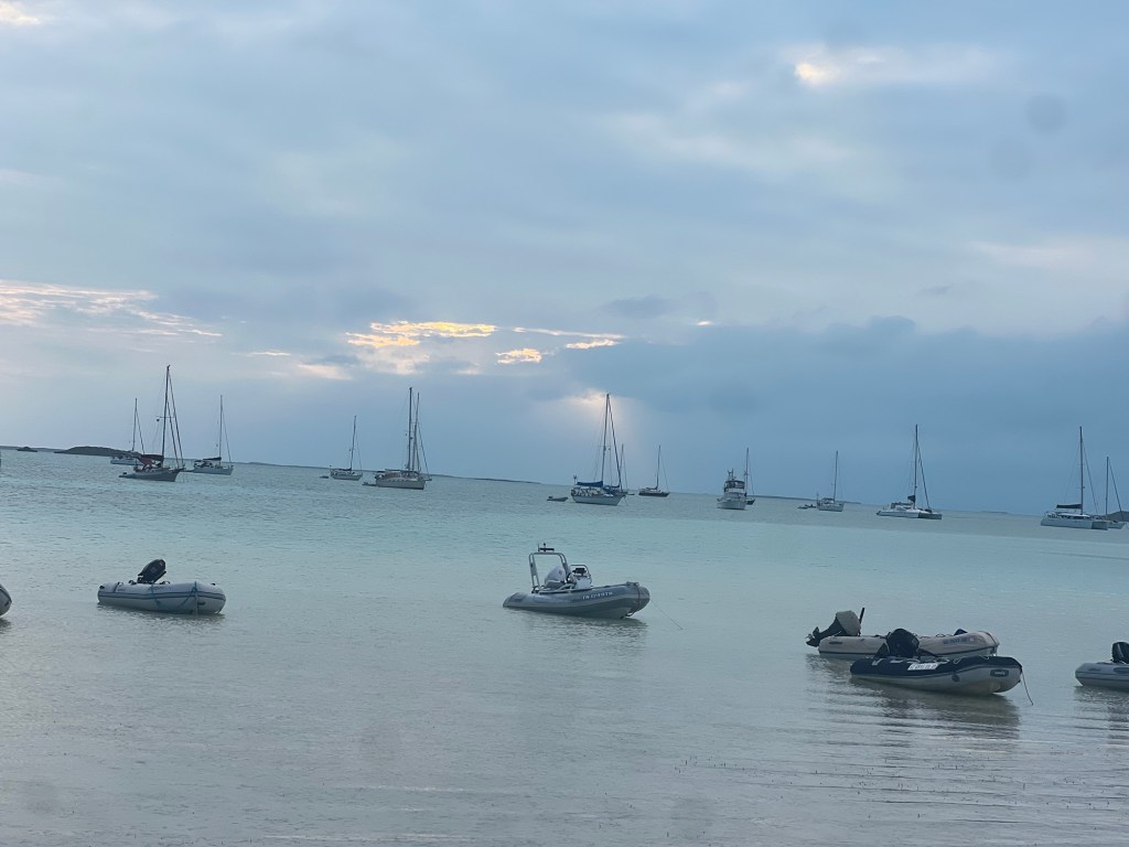 We sailed to Farmers Cay today. This cool little island has a small store/bar at the dock. We beached our dinghy’s it’s easier that way, although you get a little wet and sand filled sandals😂. There were some cool sharks and stingrays hanging out in the bay. We walked over the sandy beach and made our way to the dock to check out the store and buy a drink. I had a Grape Fanta, sold to me by cashier /bartender/ policeman! It’s a small island with an airstrip and they have a regatta( small sailboats racing). A lot of people come to the island for this event. We walked across the island all the way to the airstrip and regatta landing. The restaurant was closed but we sat on the tables with thatched roofs outside and just enjoyed the view. I picked up thatch chair and sat it on a rocky ledge on the beach and relaxed. I wish my little buddy Jett and his family was here with us. I want to share the ethereal beauty of this place with my family! There are so many abandoned houses resorts and businesses on these islands. The little grocery store had minimal but good basics. We had to go to her house and ask her to open up for us. She was happy to do it! In the small islands they aren’t at their stores all the time but will open up if you need them to. I love to ride around in the dinghy looking for old abandoned places. And find cool places to hunt for little beach treasures. We stayed here for the night and decided to hit the next town!