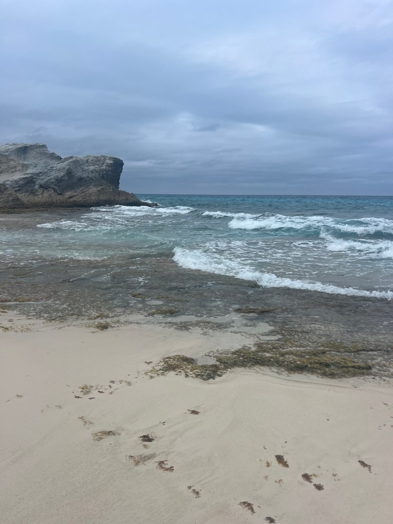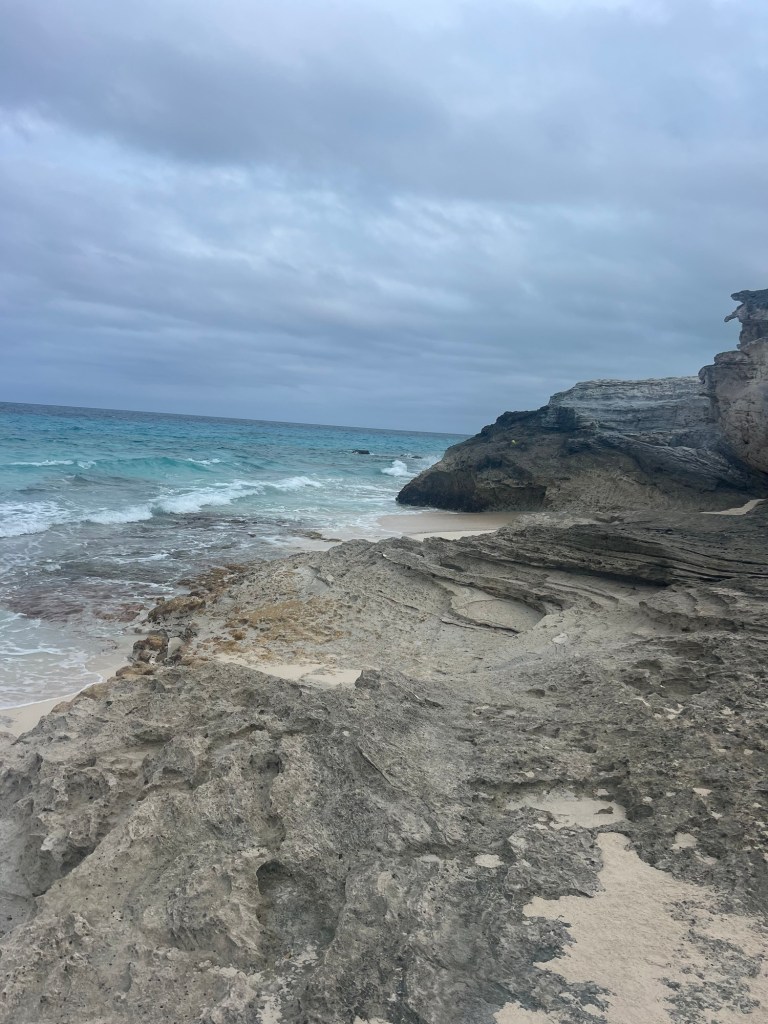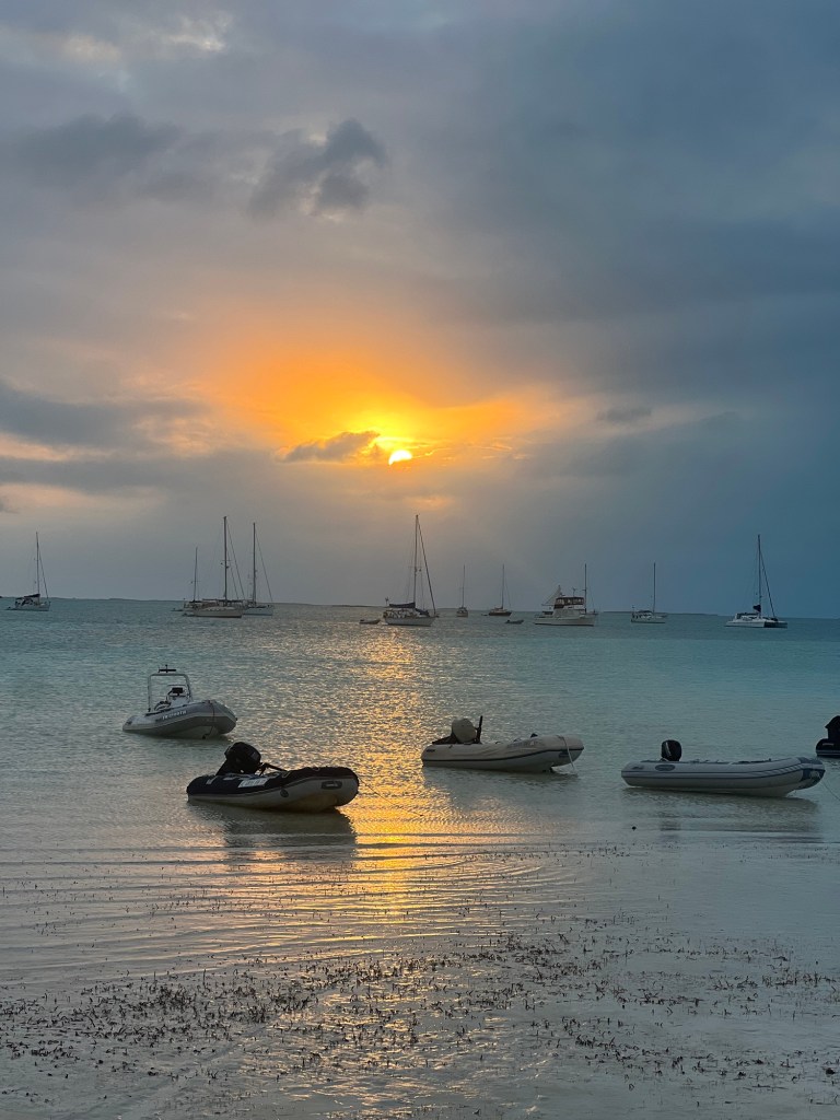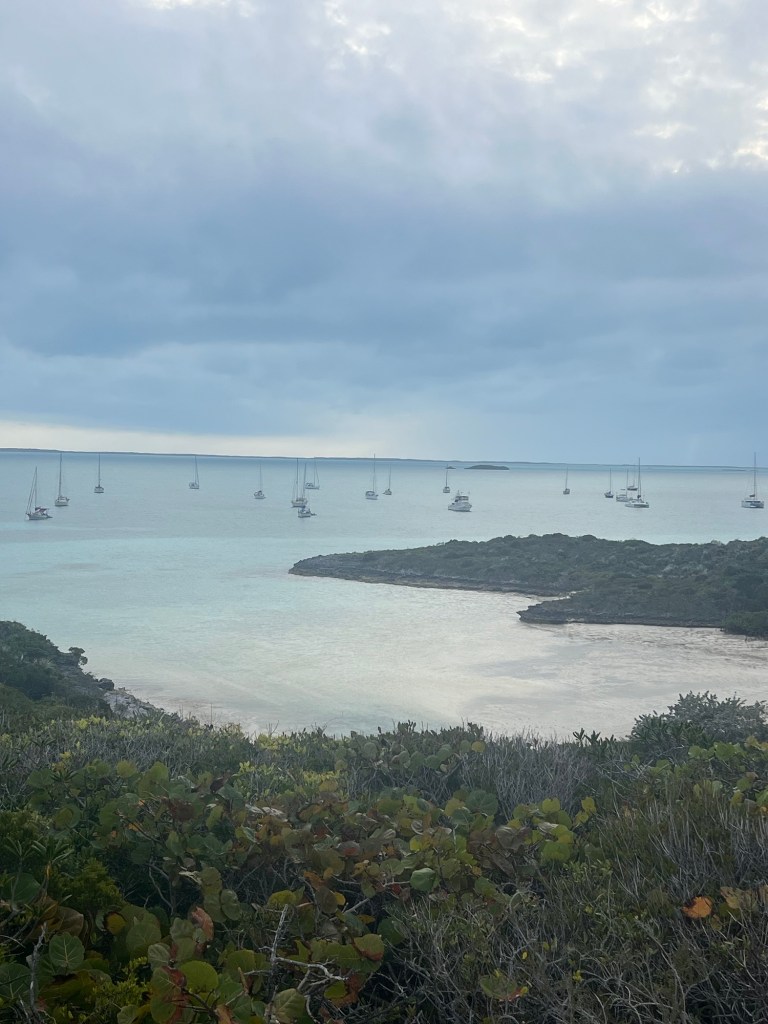 We sailed to Farmers Cay today. This cool little island has a small store/bar at the dock. We beached our dinghy’s it’s easier that way, although you get a little wet and sand filled sandals😂. There were some cool sharks and stingrays hanging out in the bay. We walked over the sandy beach and made our way to the dock to check out the store and buy a drink. I had a Grape Fanta, sold to me by cashier /bartender/ policeman! It’s a small island with an airstrip and they have a regatta( small sailboats racing). A lot of people come to the island for this event. We walked across the island all the way to the airstrip and regatta landing. The restaurant was closed but we sat on the tables with thatched roofs outside and just enjoyed the view. I picked up thatch chair and sat it on a rocky ledge on the beach and relaxed. I wish my little buddy Jett and his family was here with us. I want to share the ethereal beauty of this place with my family! There are so many abandoned houses resorts and businesses on these islands. The little grocery store had minimal but good basics. We had to go to her house and ask her to open up for us. She was happy to do it! In the small islands they aren’t at their stores all the time but will open up if you need them to. I love to ride around in the dinghy looking for old abandoned places. And find cool places to hunt for little beach treasures. We stayed here for the night and decided to hit the next town!