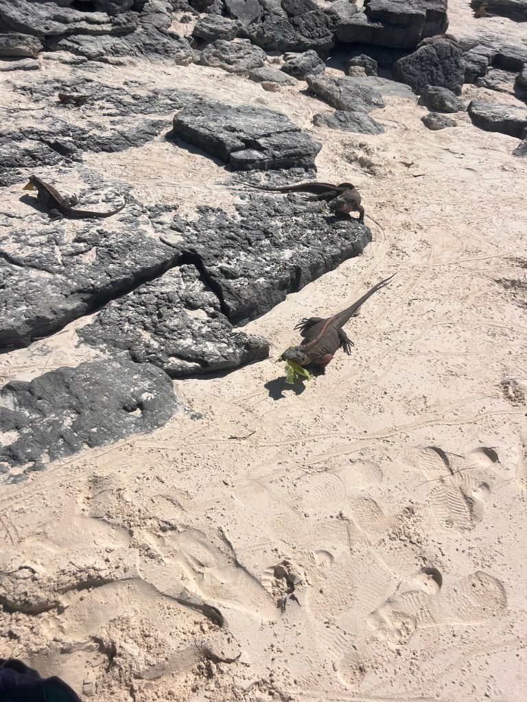 Started out a beautiful day! We took the dinghies over to an island with lots of iguanas and cool beaches to explore!