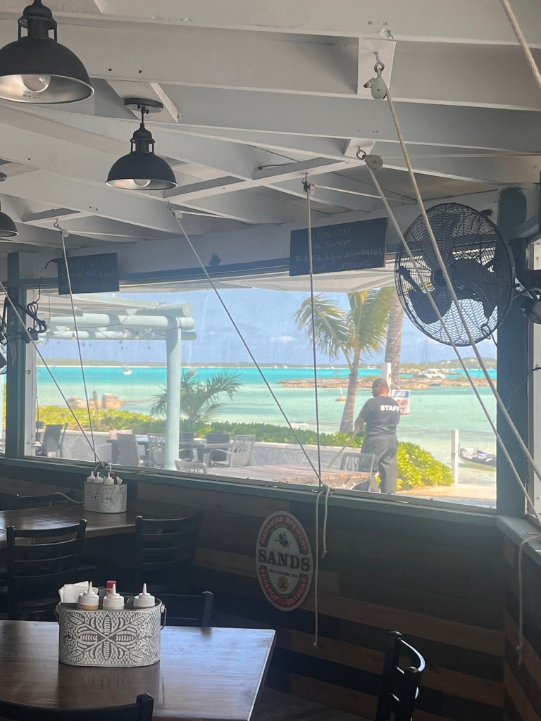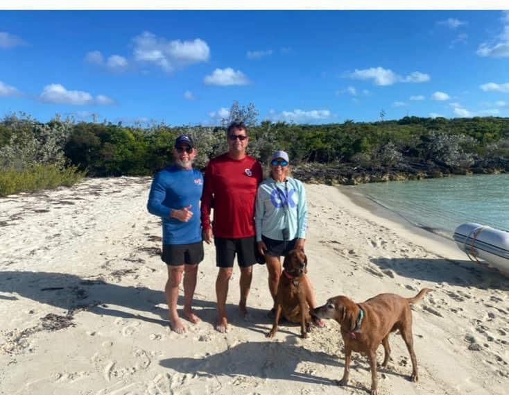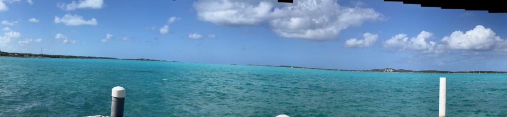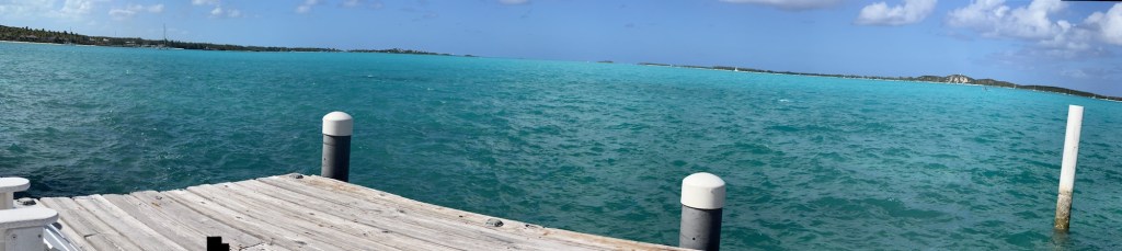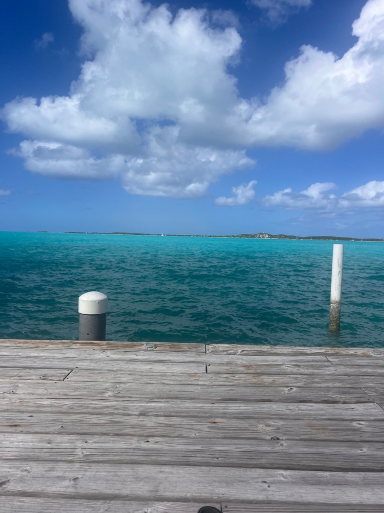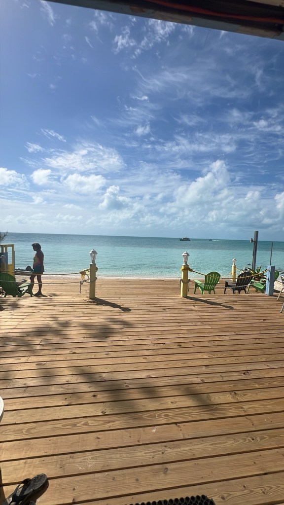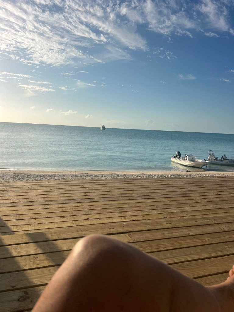 Well up and stem this morning! We went to flip flop beach at 10:30 with Victoria, Mike, Barry, and Andrea. Oh and Ocean the jet black German shepherd! The sand on flip flop beach is so soft and it feels so good under your feet. Ocean was fetching sticks while we were there, two and three at a time! Jumping into the water over and over like a sports game replay😂. We sat and talked a bit just enjoying the sun sand and water, then Victoria and Mike had to leave. So Andrea and I went on a short hike to the windward side of the island. It was a cool hike. We walked through pine needles, through soft sand avoiding the sharp prickle berries that stick your feet, through the mini jungle with palms and scattered different types of trees and bushes creating a shady pretty path that opens into a beautiful beach with mini shells, after you pass the fishing net with stray flip flops and shoes that have washed up on the beach. We walked around and looked at the cute shells enjoying the sound of slapping waves against the sand. Life in the Exumas doesn’t suck!
