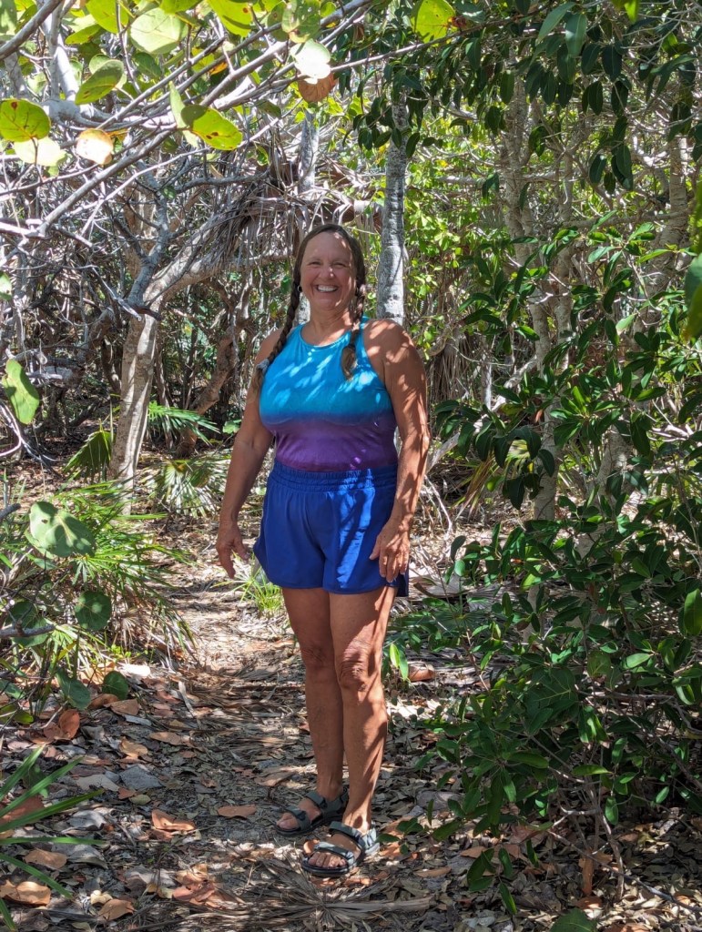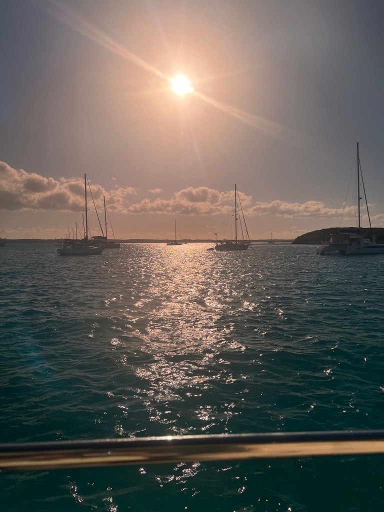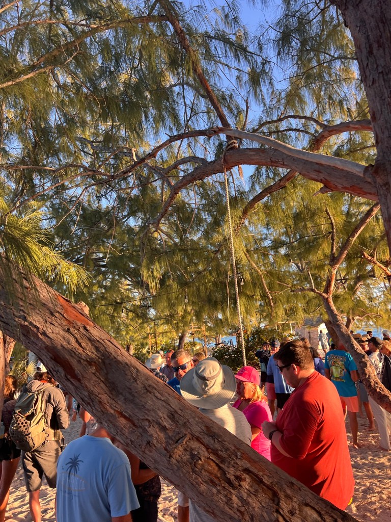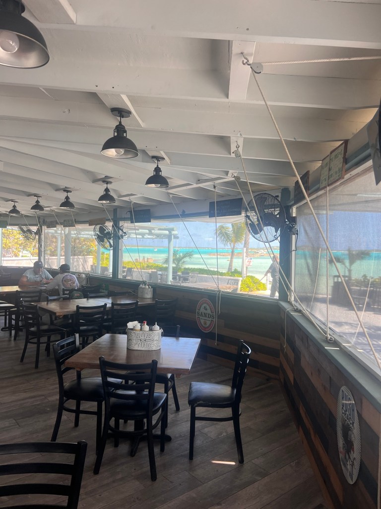 Well up and stem this morning! We went to flip flop beach at 10:30 with Victoria, Mike, Barry, and Andrea. Oh and Ocean the jet black German shepherd! The sand on flip flop beach is so soft and it feels so good under your feet. Ocean was fetching sticks while we were there, two and three at a time! Jumping into the water over and over like a sports game replay😂. We sat and talked a bit just enjoying the sun sand and water, then Victoria and Mike had to leave. So Andrea and I went on a short hike to the windward side of the island. It was a cool hike. We walked through pine needles, through soft sand avoiding the sharp prickle berries that stick your feet, through the mini jungle with palms and scattered different types of trees and bushes creating a shady pretty path that opens into a beautiful beach with mini shells, after you pass the fishing net with stray flip flops and shoes that have washed up on the beach. We walked around and looked at the cute shells enjoying the sound of slapping waves against the sand. Life in the Exumas doesn’t suck!