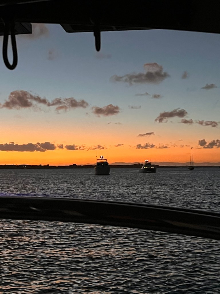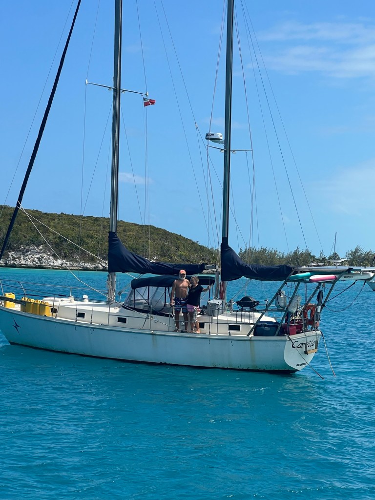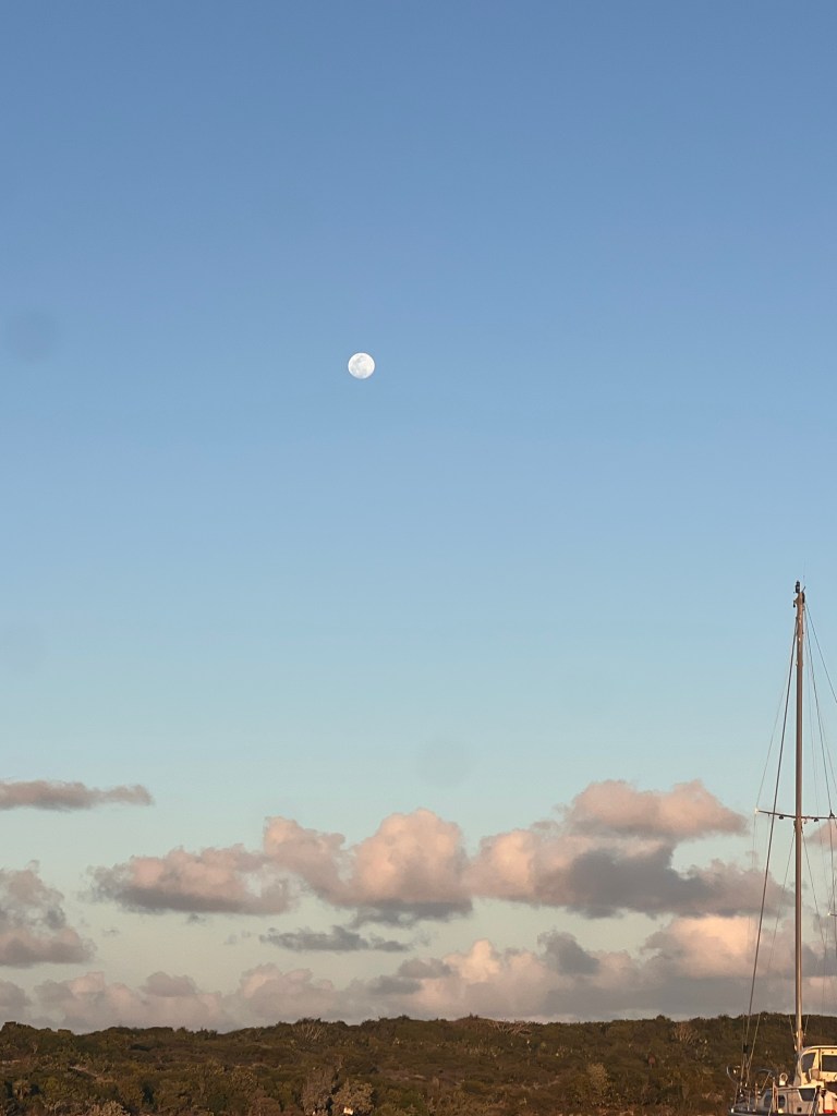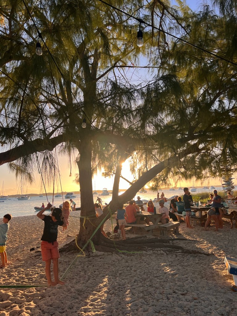 We had a lively sail from Farmers Cay to Georgetown today! Fast too! Heeling some and jumping a few waves and boom we made it! As we arrived our friends Andrea and Barry from our previous adventure were in the anchorage! They are headed home to Tennessee. It was great to see them again! We went to a cool restaurant to eat and celebrate. We went back to the boat played Flip and Spoons. After that I stayed up late making a strawberry refrigerator poke cake! It is now 1 am on Thursday!