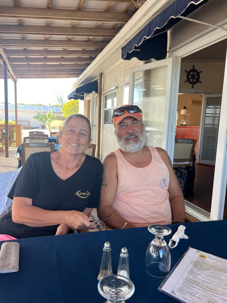 Today we went snorkeling around the rock in the middle of Farmers Cay cut with Lorraine and Mike of s/v Mintaka. We had to go at slack tide so we didn’t have to fight the tide. It can get pretty gnarly if you pick the wrong time to snorkel in certain areas. I have never seen such bright purple fans, extremely colorful coral, especially on the rock walls! So many fish! Big Queen Angelfish, grouper, snapper, neons, triggerfish, fairybasslet, trumpet fish, wrasses, and so many more. Oh a turtle too! We finished there and decided to drift dive (hanging on to your boat and just snorkeling as you go) we were in deep waters headed toward the shallows when Steve said “ two bull sharks get in the dinghy”. I looked and saw a massive bull shark but didn’t see the other one, so I climbed into the dinghy. One your probably ok two might be hunting. Always good to be safe. It’s the one you don’t see that gets ya!😂 Pretty much the end of our snorkeling for today. We decided to head back and fix a dish to go eat at Lorraine and Mikes. He speared two really good size lobsters for supper! It was a most enjoyable evening with excellent lobster fajitas! Thanks Lorraine and Mike! Time to say goodnight and enjoy the pics.