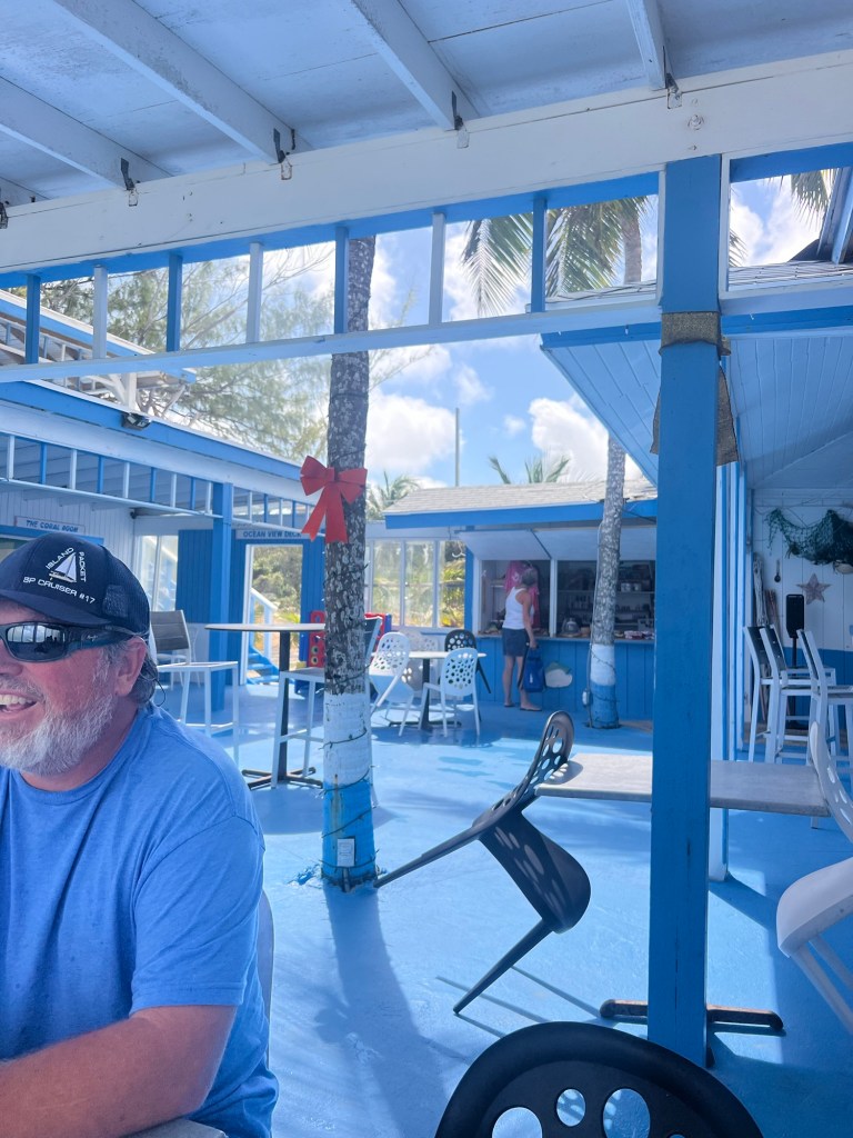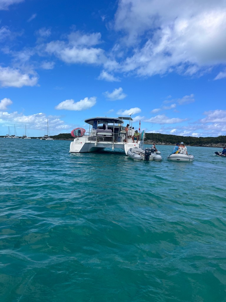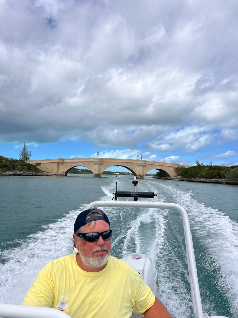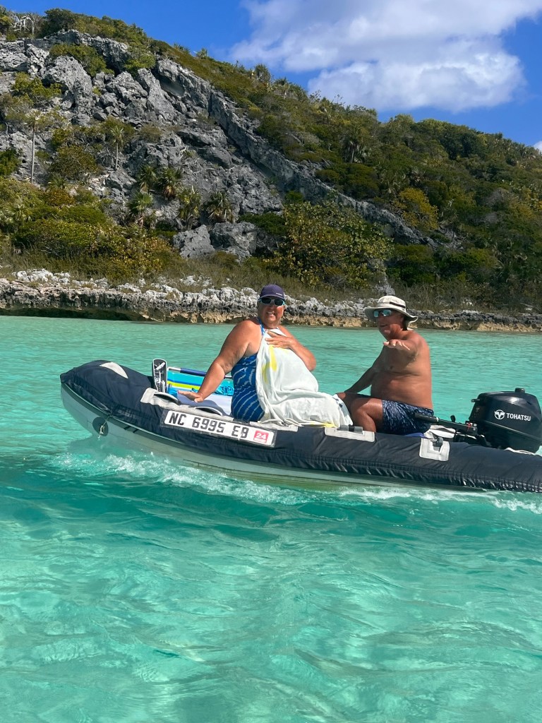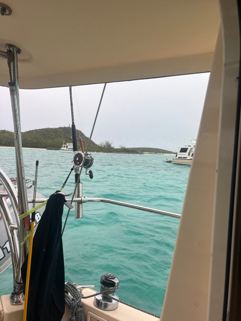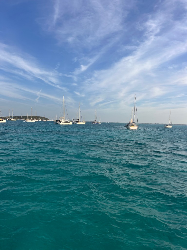 Eating pizza today at Sandpiper cafe in downtown Georgetown Exuma Bahamas.Ditto!Crowded dinghy dock. Be careful here lots of tying up over under and around others dinghies😆.Went under this bridge headed to Browns Marine Store on the south side of GT.Browns marina store.Not sure what happened here? Butt pic?!😂Barefoot travels on Utube! Check them out!Sweet baby puppy!Barefoot Travels catamaran. Great story behind it too.Zooming along holding on to my hat!The other gas dock. There is a shell station but had a lot of water in gas.