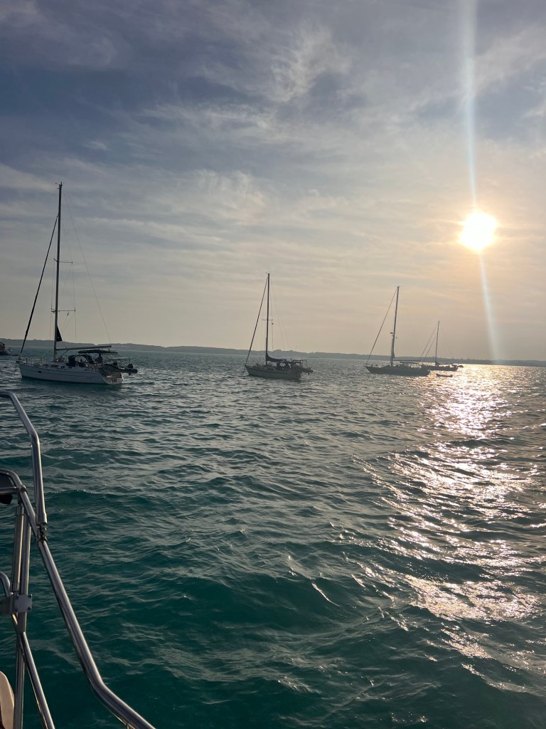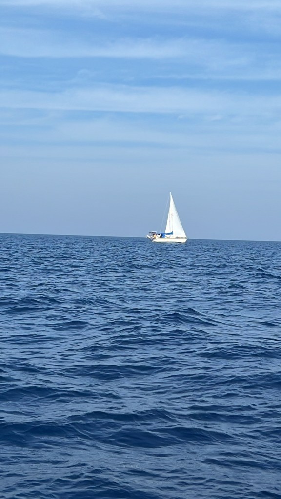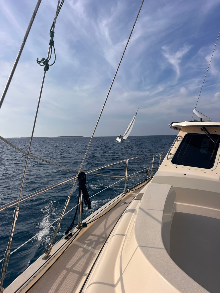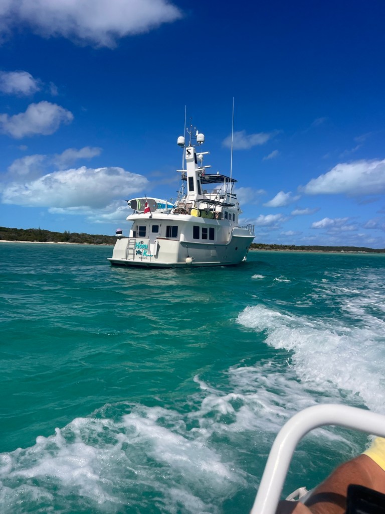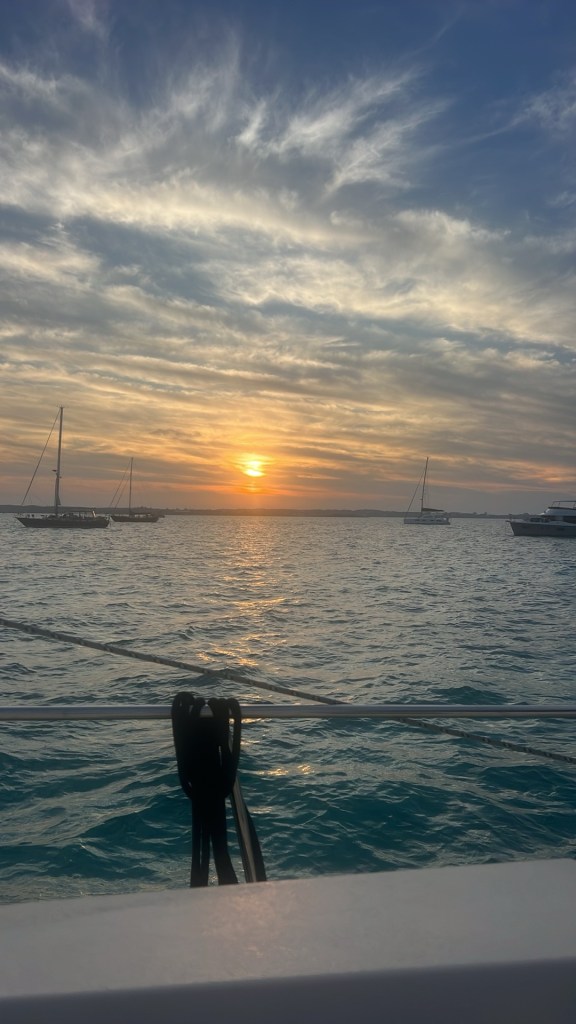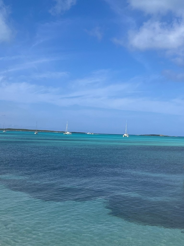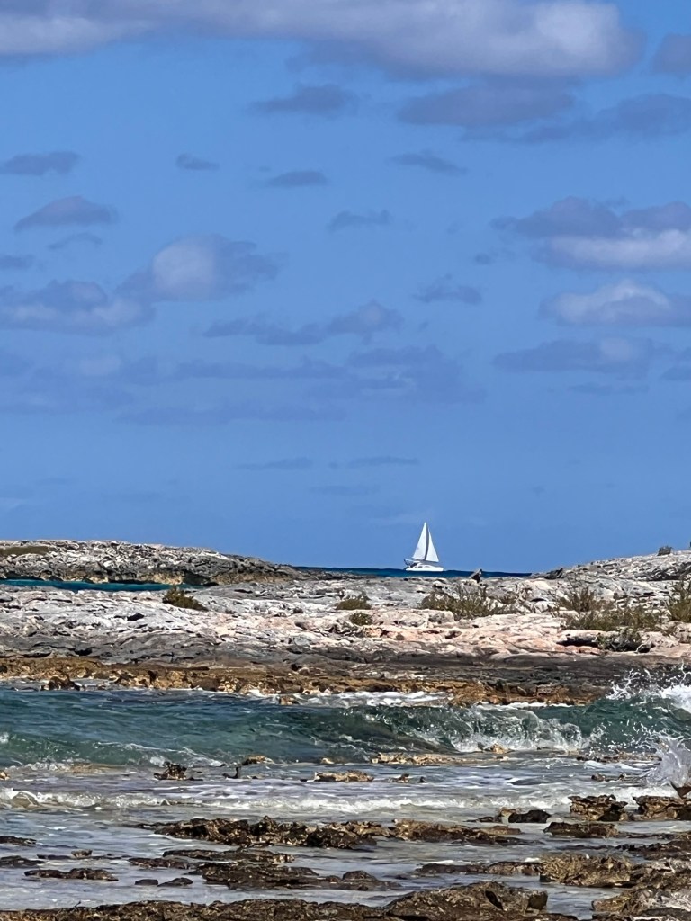 Eating pizza today at Sandpiper cafe in downtown Georgetown Exuma Bahamas.Ditto!Crowded dinghy dock. Be careful here lots of tying up over under and around others dinghies😆.Went under this bridge headed to Browns Marine Store on the south side of GT.Browns marina store.Not sure what happened here? Butt pic?!😂Barefoot travels on Utube! Check them out!Sweet baby puppy!Barefoot Travels catamaran. Great story behind it too.Zooming along holding on to my hat!The other gas dock. There is a shell station but had a lot of water in gas.