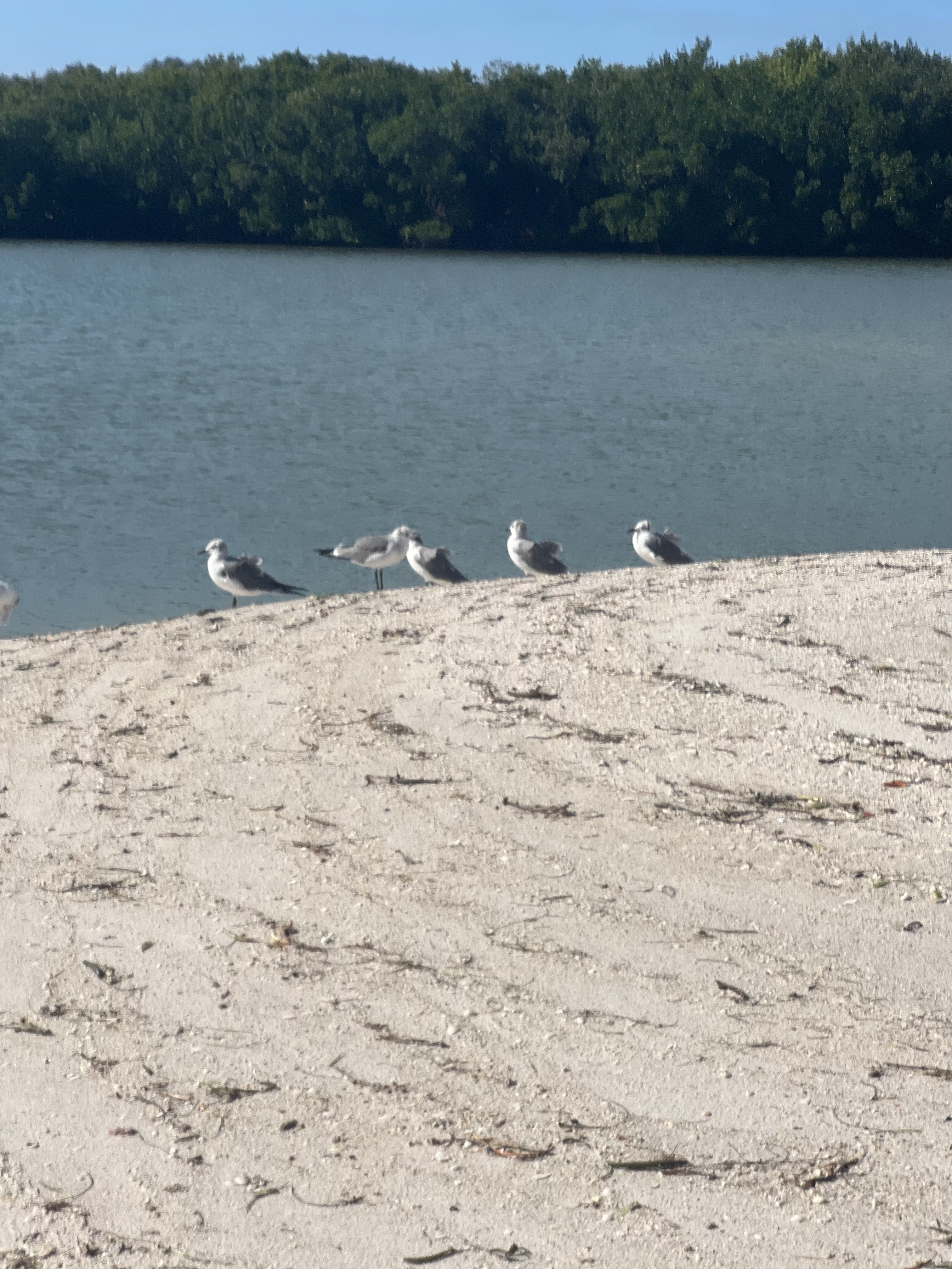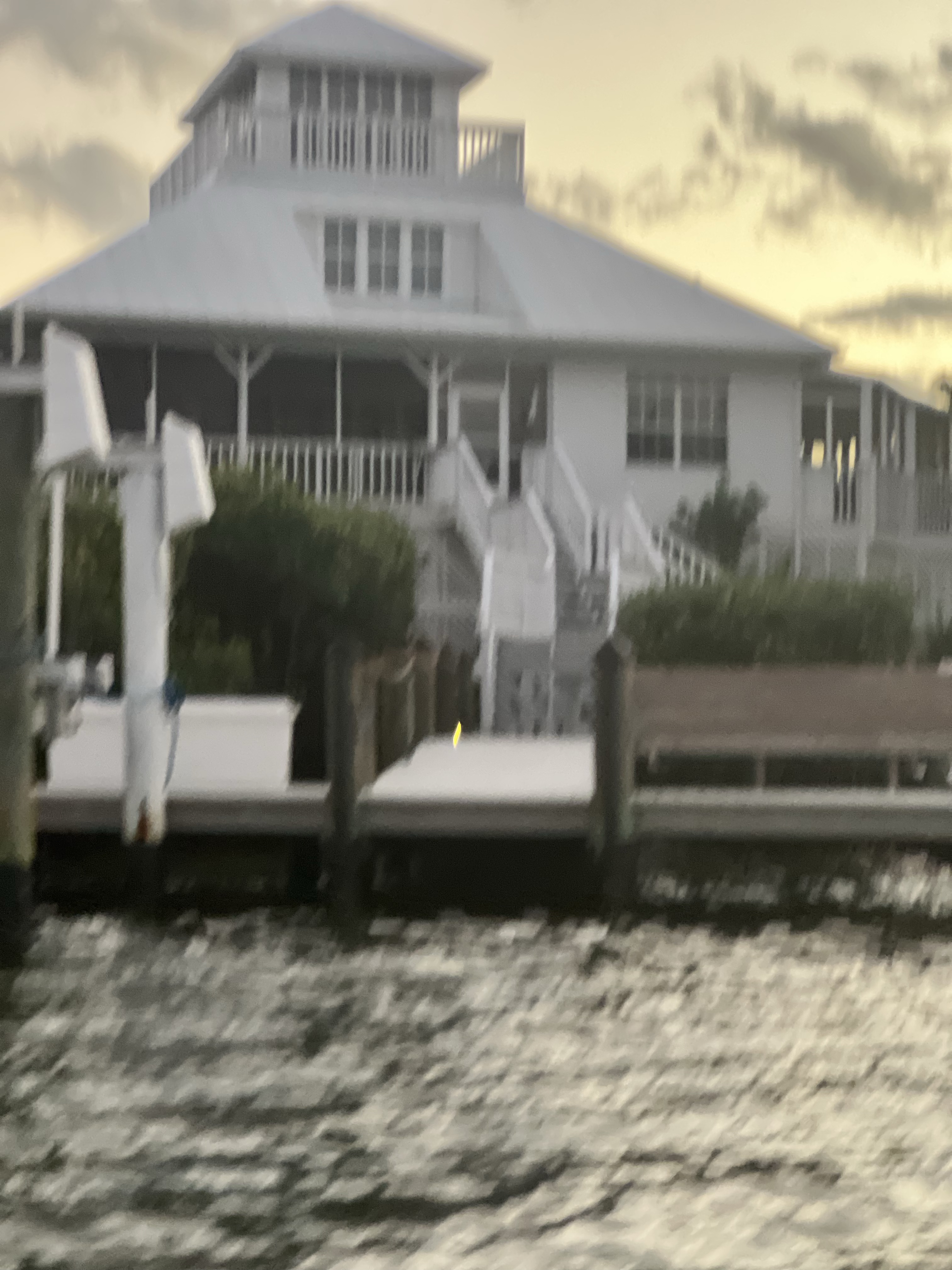 Sunshine streaming through my hatch today waking us up to a wonderful day to leave Tarpon Belly and headed to Alligator Lighthouse to snorkel and hang out in the sunshine. So we headed back down the trail to the bridge marina gas station to get some gas with Barry and Andrea. The lady at the store was wonderful helping us to tie up and introduced us to her Healer that retrieves a small boat fender as his toy. Beautiful little guy with a tremendous personality. After our visit to the store we headed out to alligator key to snorkel. The rollers were rolling us back and forth on the way and didn’t get any better after we got there but we had a ball snorkeling! We just left the boat to roll while we jumped in and swam to the lighthouse to see the creatures. Putting my head under the water i saw so many different types of fish. Having to pay attention to the coral and metal legs of the lighthouse i manipulated the maze to see the big barracudas, angel fish, parrot fish, and all kinds of other brightly colored silver shining fish swimming around me. I looked down and saw two nurse sharks which made me a little nervous because they are not violent but one saw me and started toward me. I swam away and she followed for a few feet then turned and swam away. She was just curious and i realized i had my silver earrings in shining brightly in the suns water rays. Took them off and put them away so the barracuda wouldn’t be interested in my shiny ears lol. Spent several hours in the water and got back on the rolly polly boat and headed to Layton Florida. We anchored out by the bridge near the city and a small canal we can navigate with the dinghys.The next day we took off into them went through many boat canals and homes until we found a place to tie up and walk into town. Found a cool place to eat sit and enjoy the beautiful scenery. After eating we walked around town and into the small neighborhoods looking at the neat houses on and near the water. We walked back to the dinghy’s through an empty lot and untied them from the branches and the questionable rope and motored around to see the houses we missed on the small canals. Got to a really shallow part and enjoyed seeing all the starfish on the bottom as well as the fish swimming around us. You could see the bottom with all the jellyfish and coral as well as the plant growth spreading out between them. Getting back to the boat we relaxed and enjoyed another beautiful sunset in the keys. MUCH LOVE and fair winds to all our readers no matter how small a group lol.