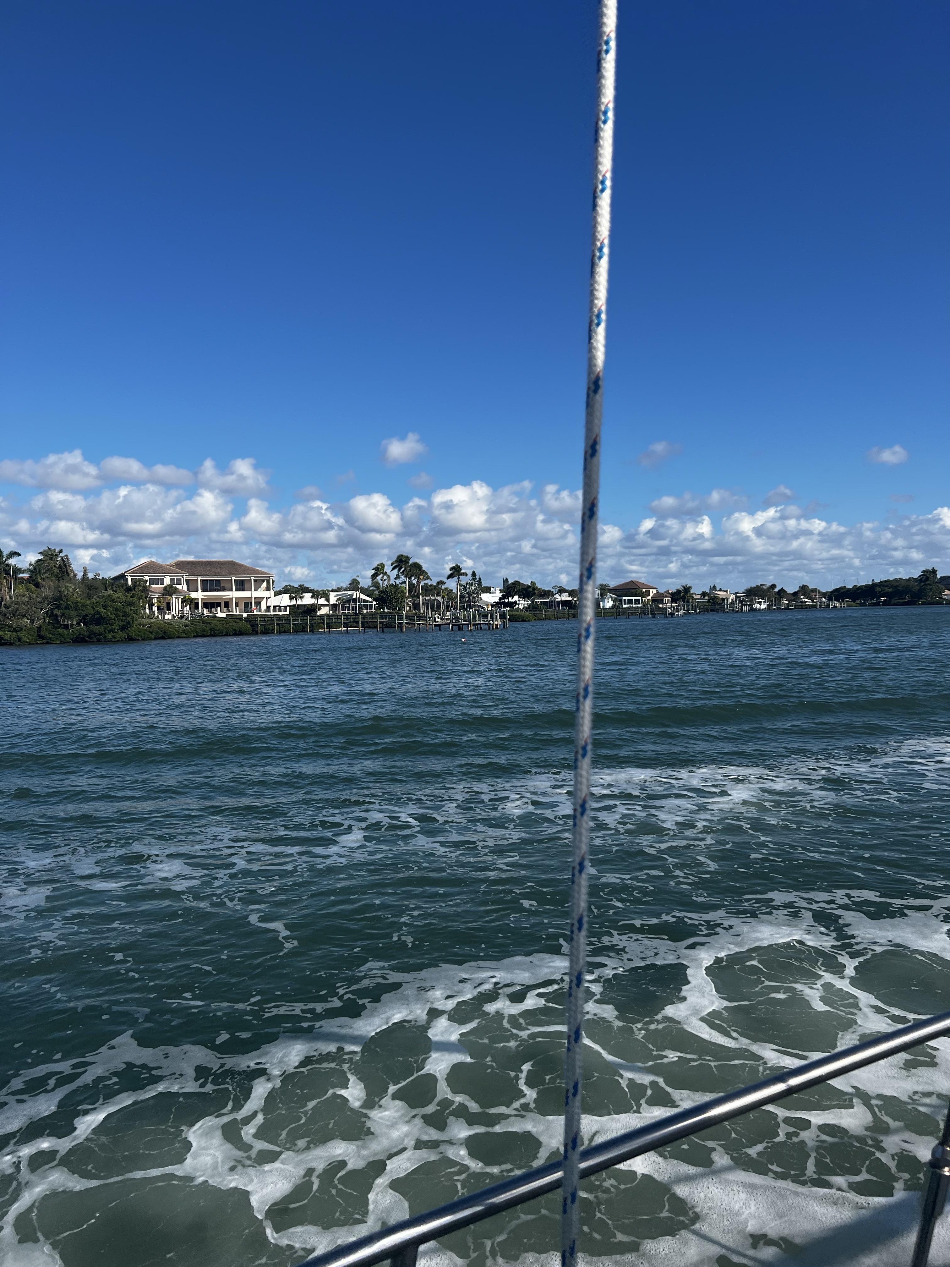 Today we started it with a great breakfast at the end of that beautiful waterway near us. After that we pulled anchor and started on our adventure down the racetrack known as the Sarasota/Tampa ICW. As usual we had to take it very slow and watch out for pshychotic boaters, hahahaha. Well we enjoyed the beautiful scenery that includes the cool houses on the banks of the ICW. The temperature was good today also so I sat our on the front of the boat and enjoyed it. Coming into Venice it was like a traffic jam on the freeway and finally made it safely into a side waterway and into the venice anchorage areas.